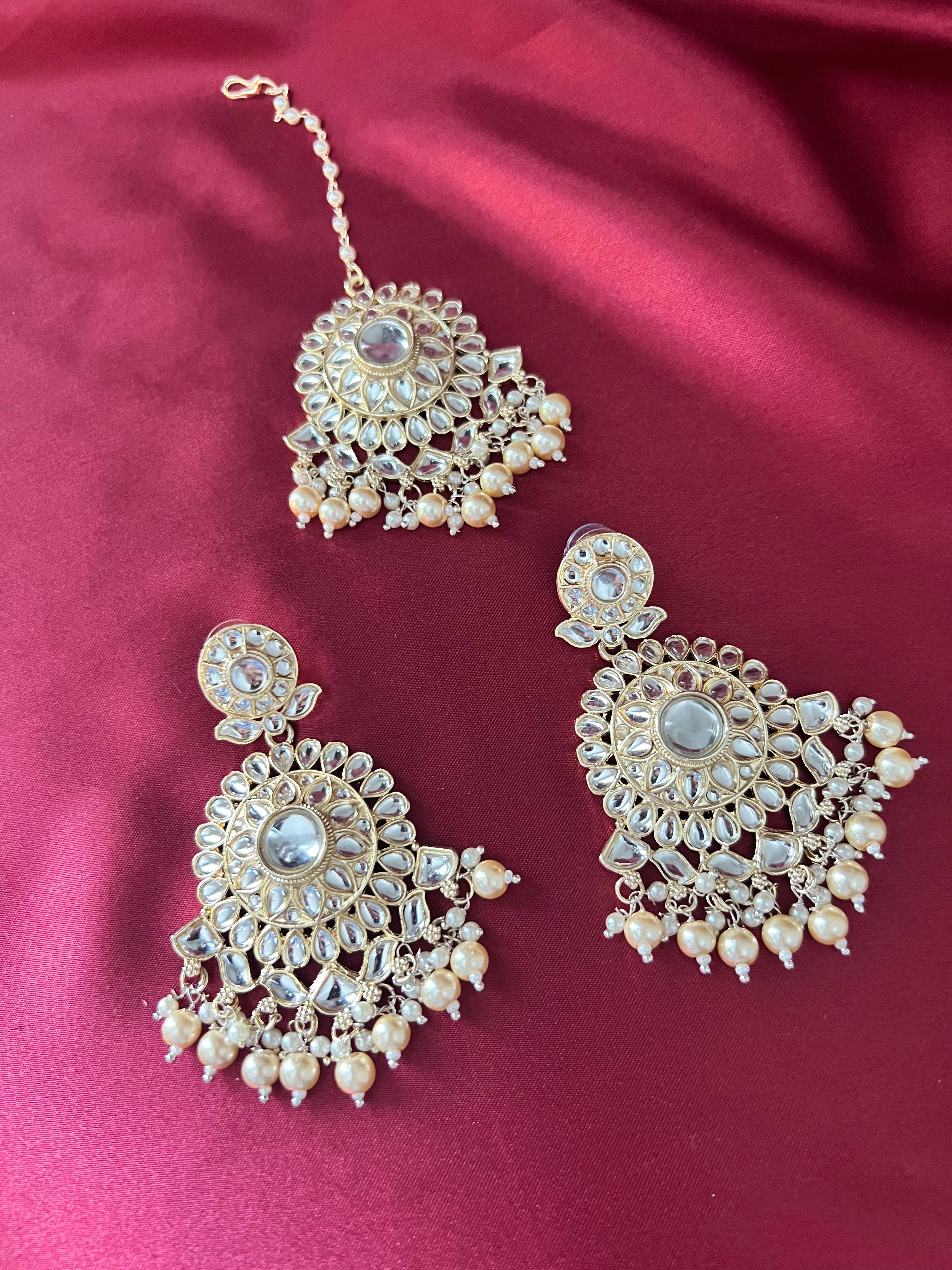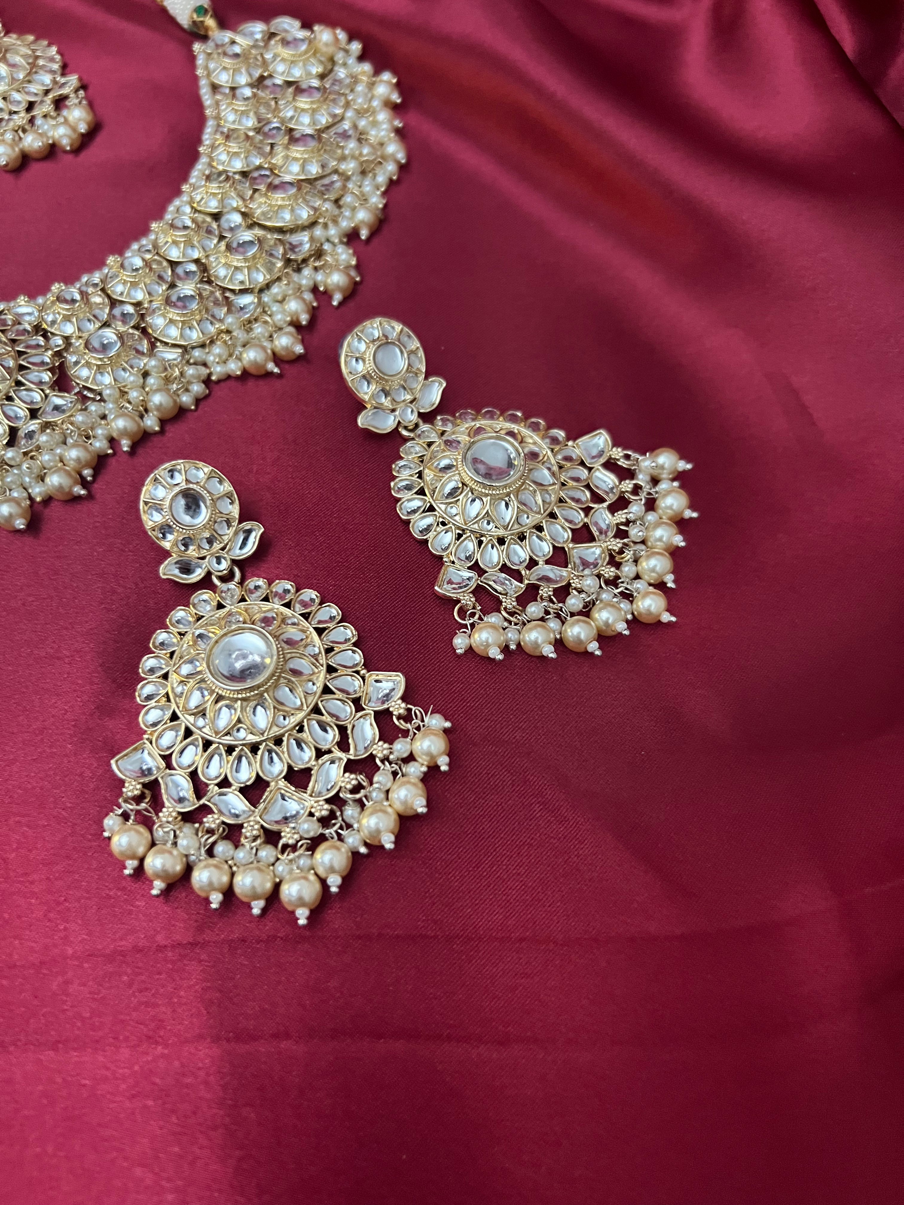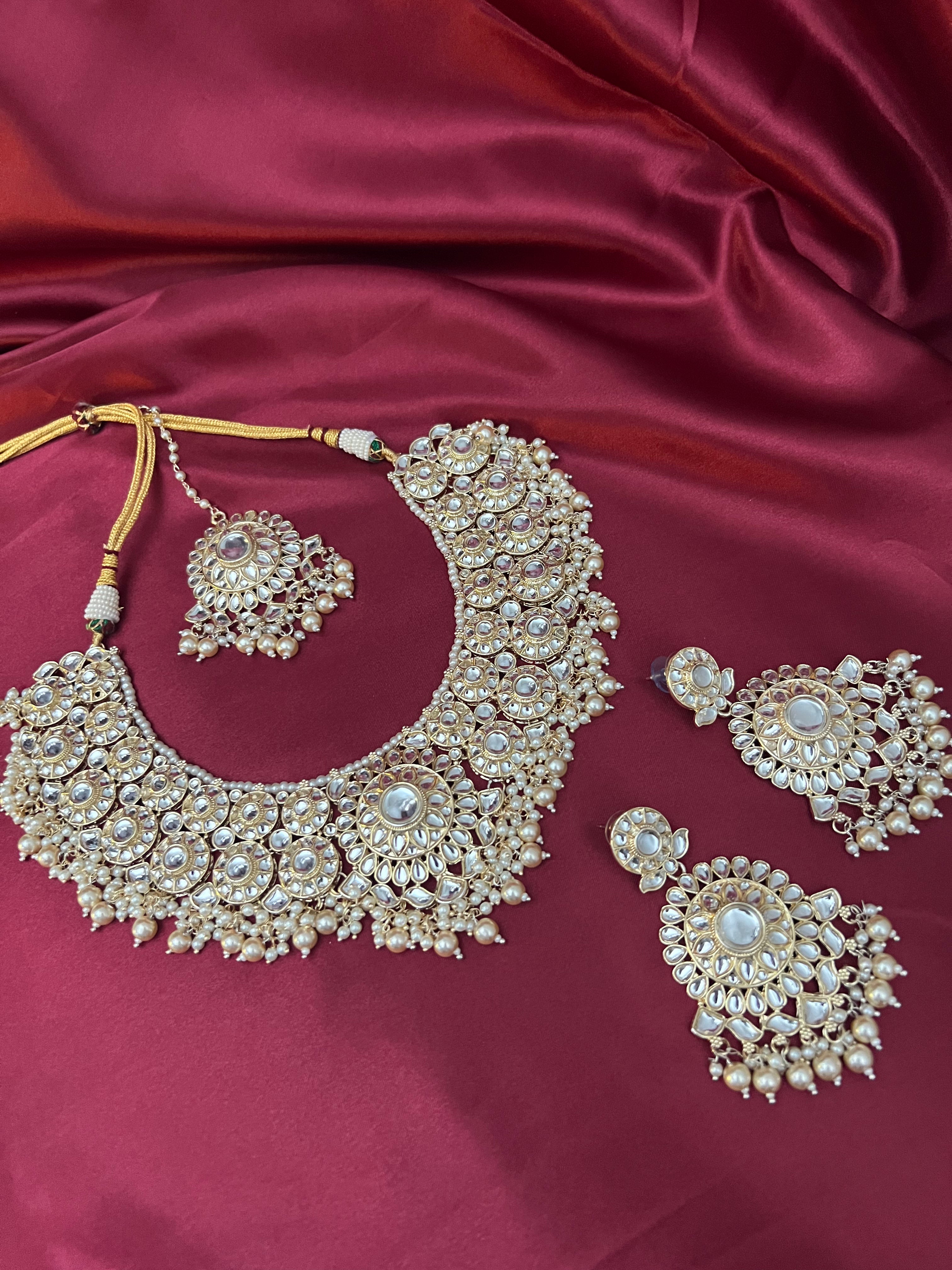 Its a beautiful kundan necklace with earrings and Tikka