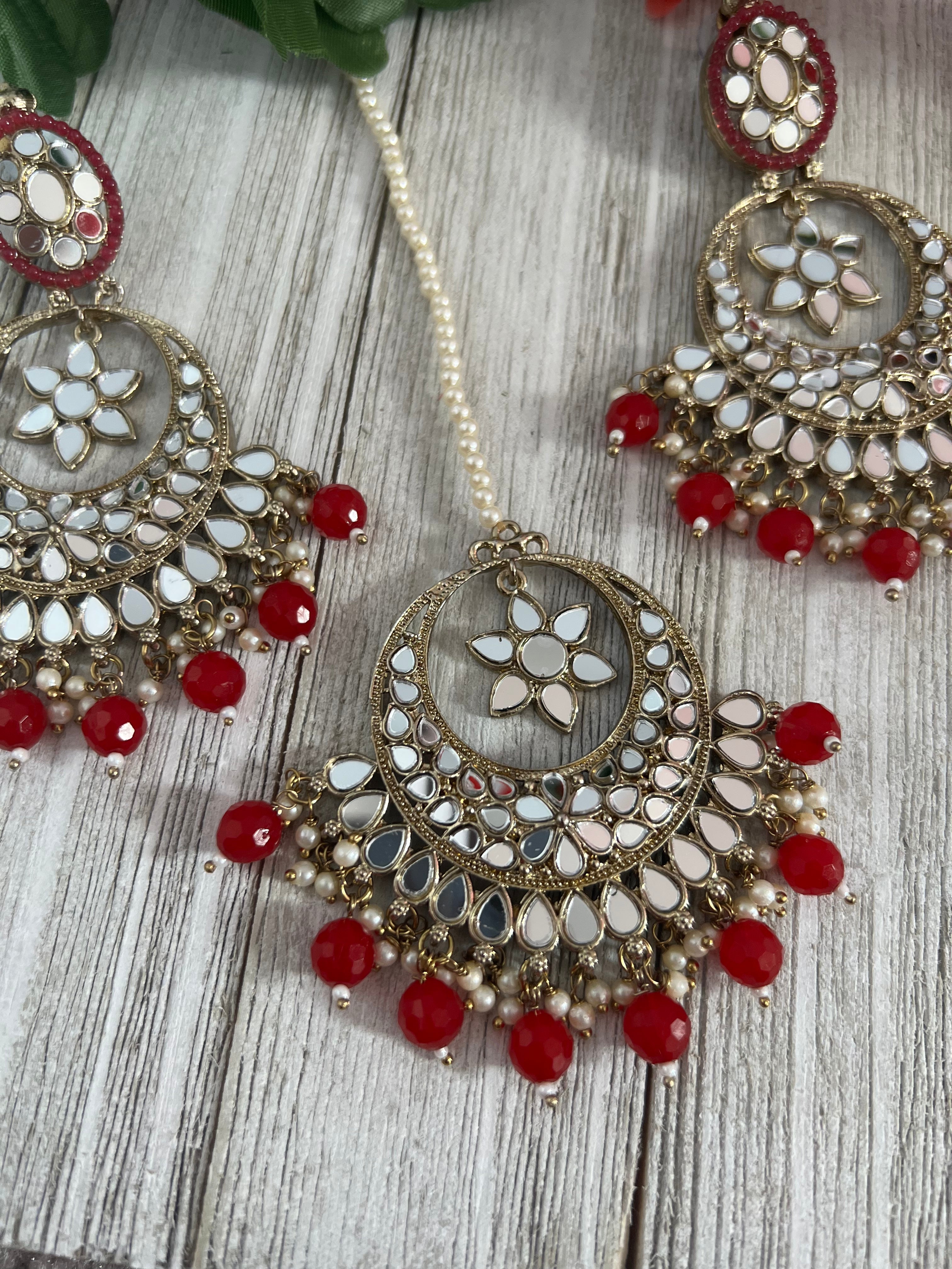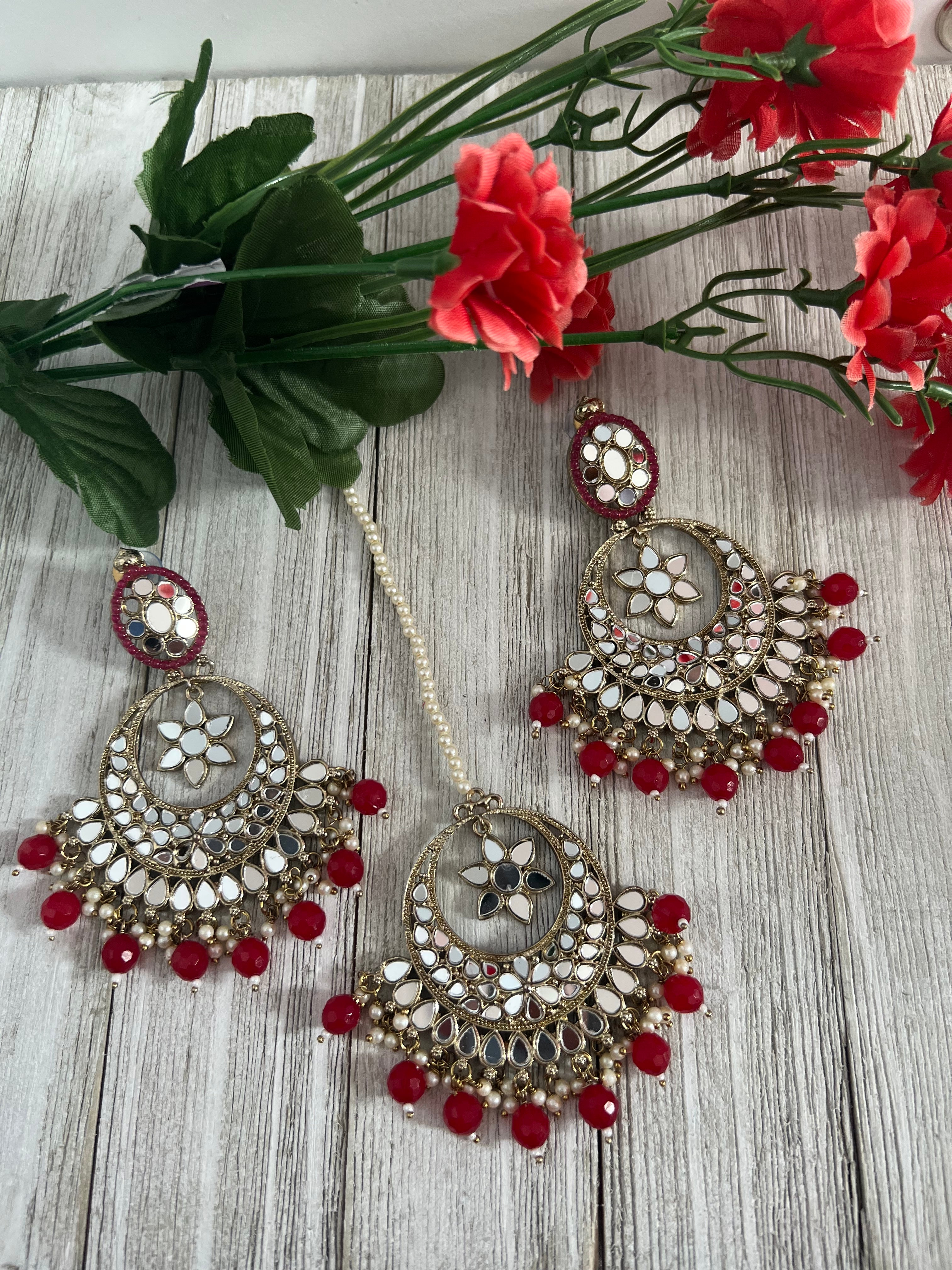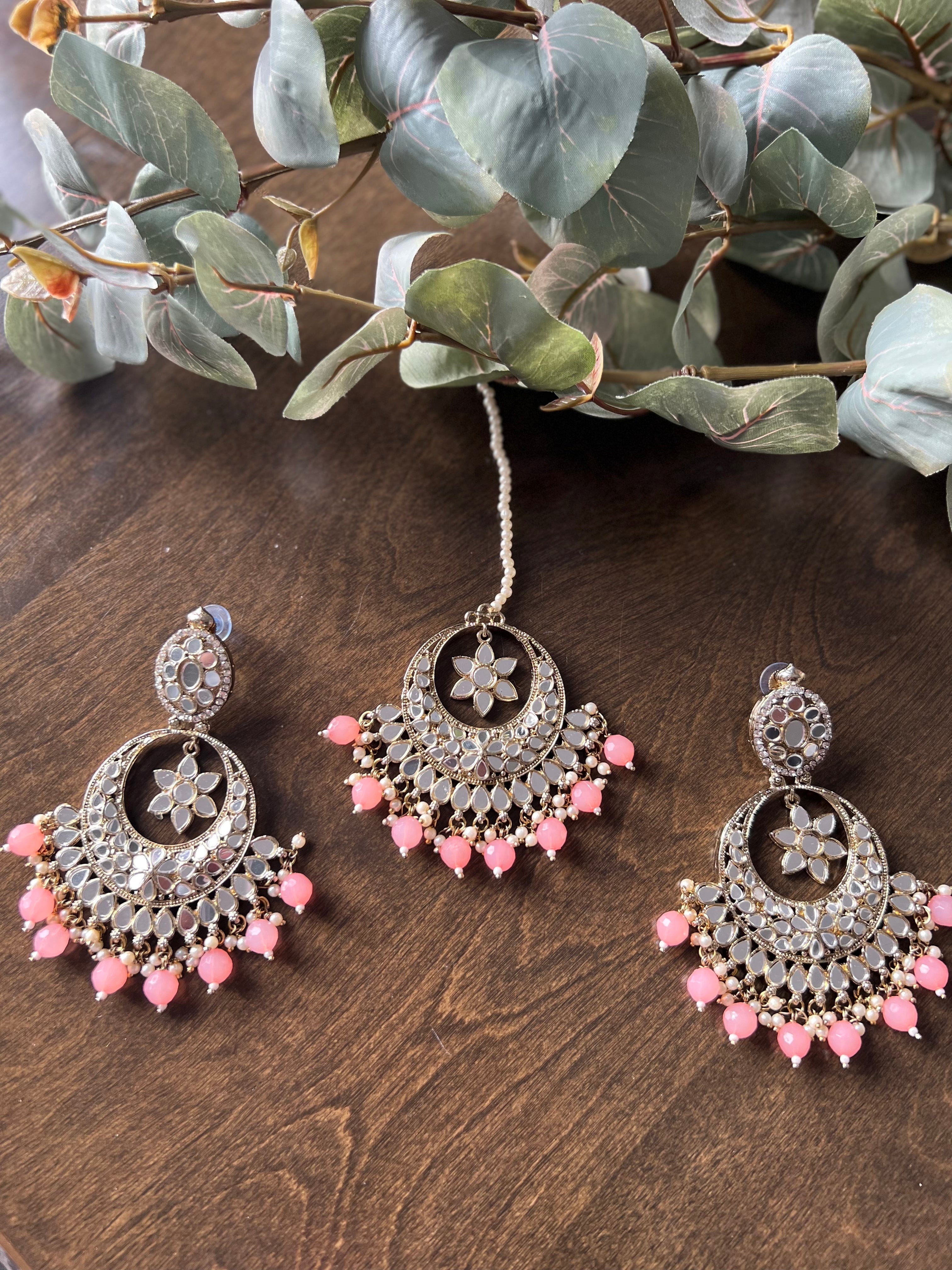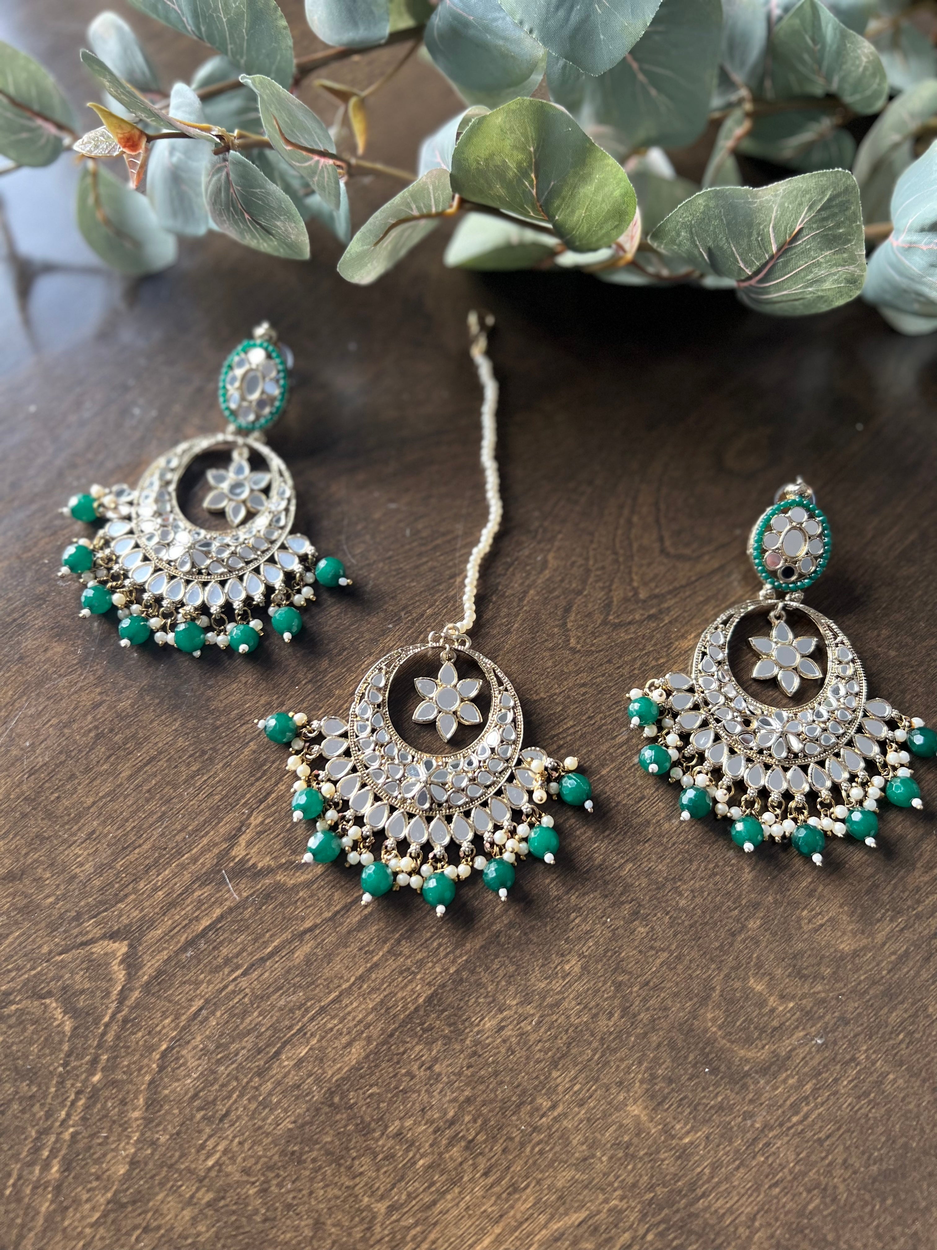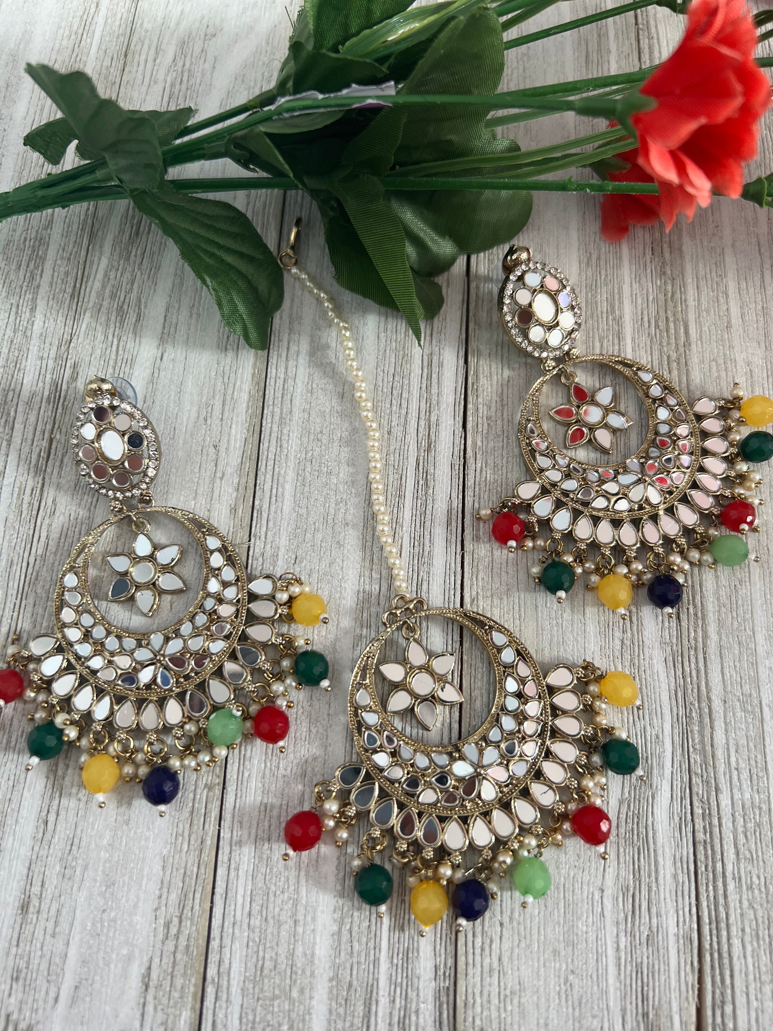 Mirror earrings and Tikka