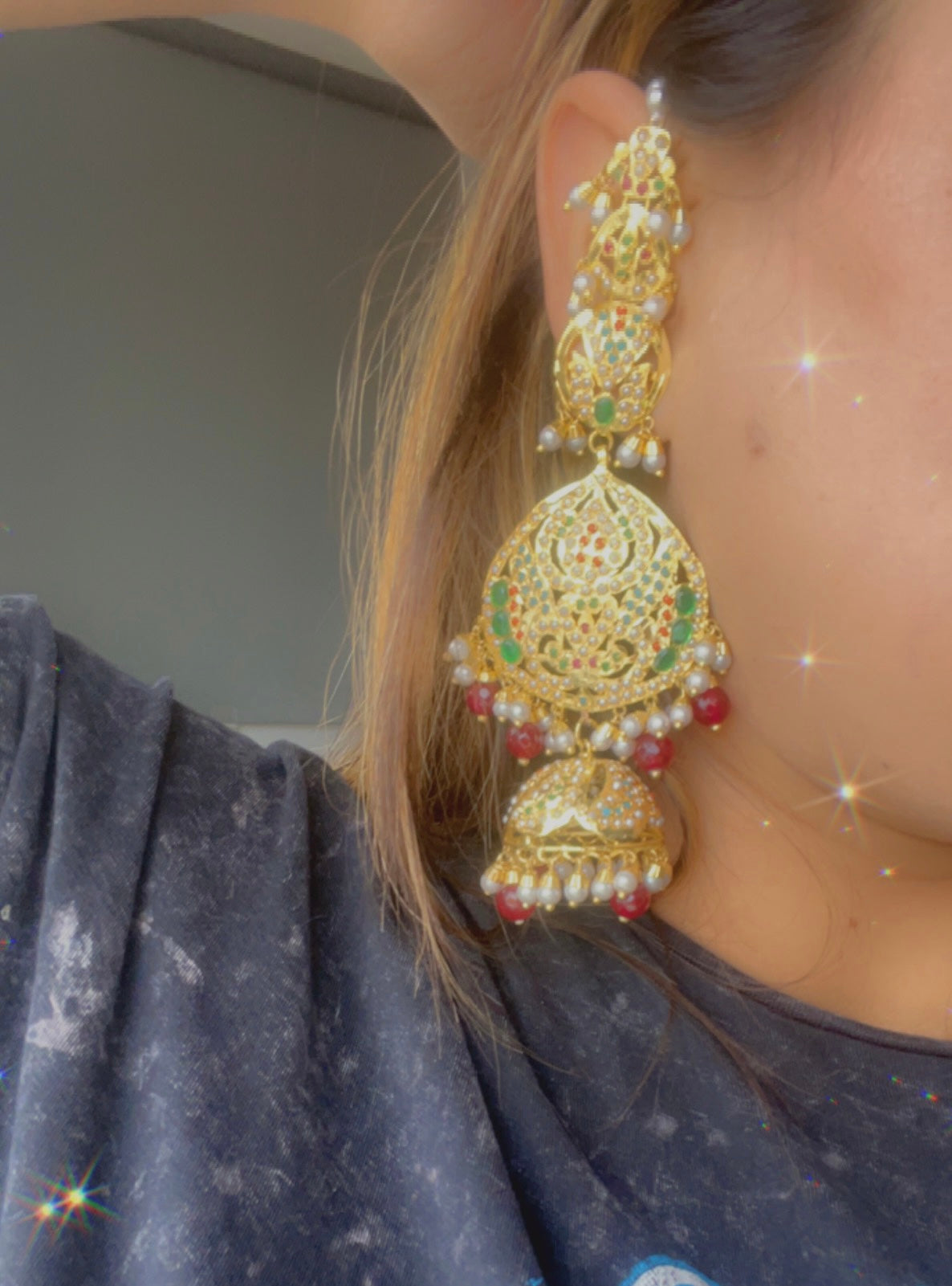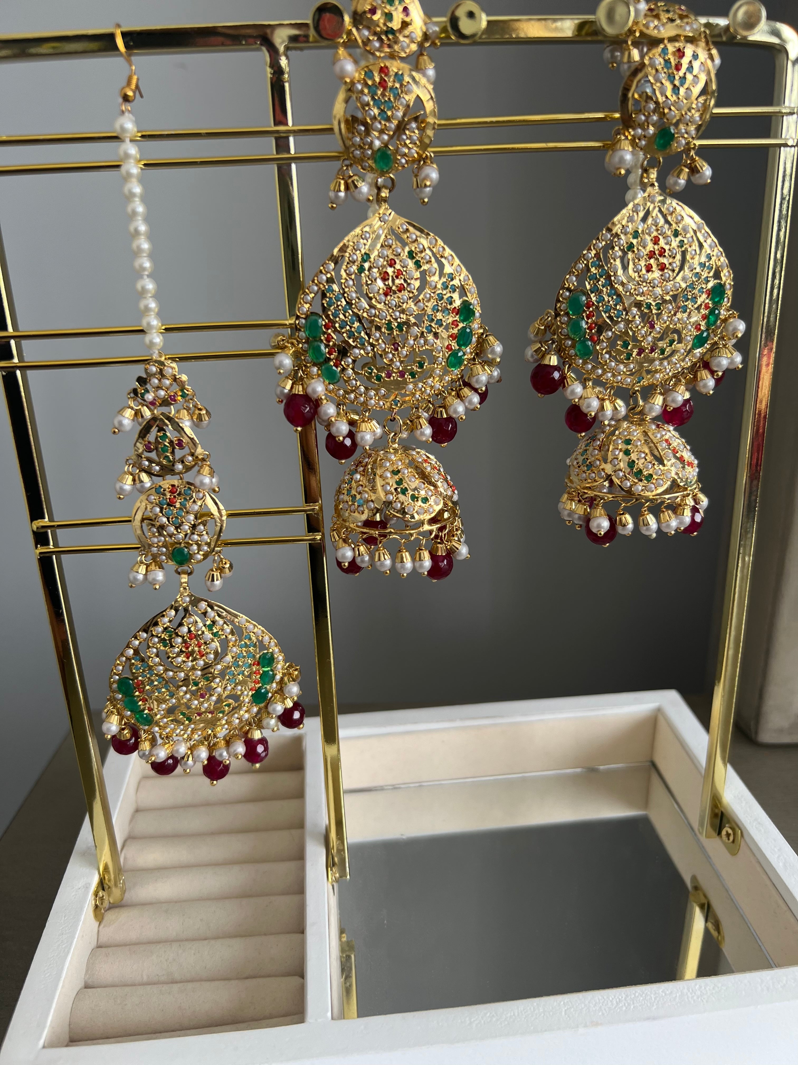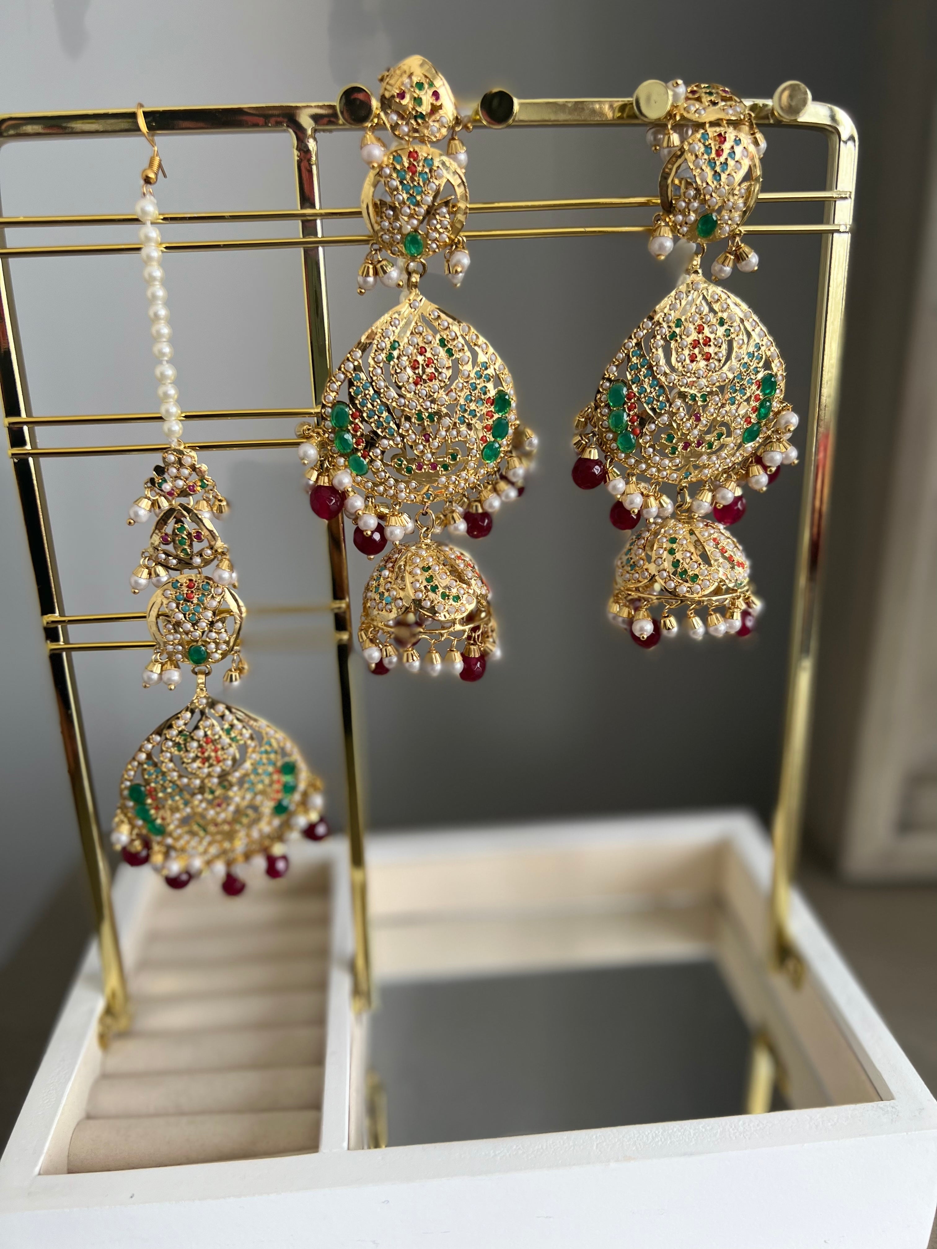 Gold plated Real Jadau Earrings with sahara and Tikka
