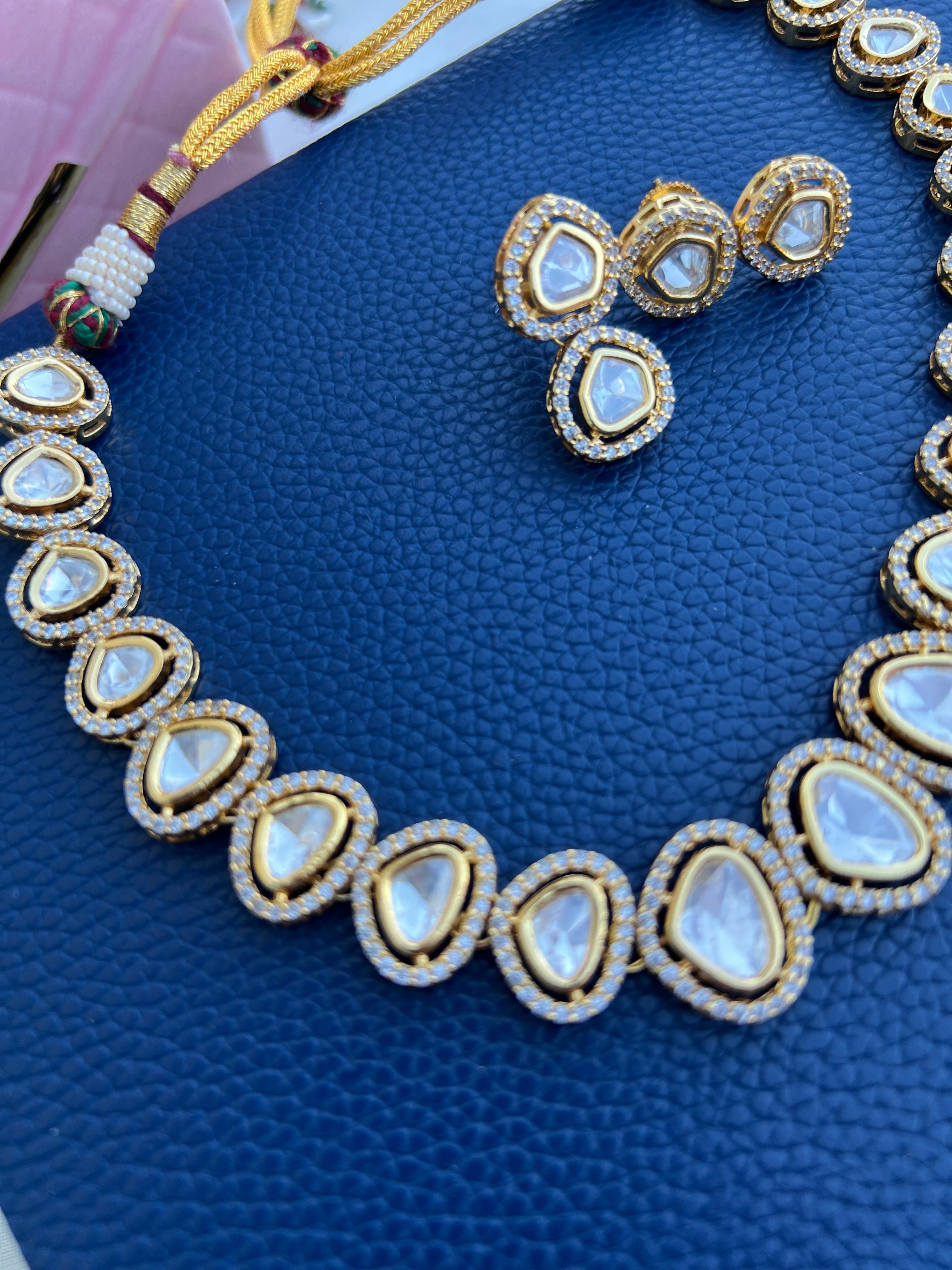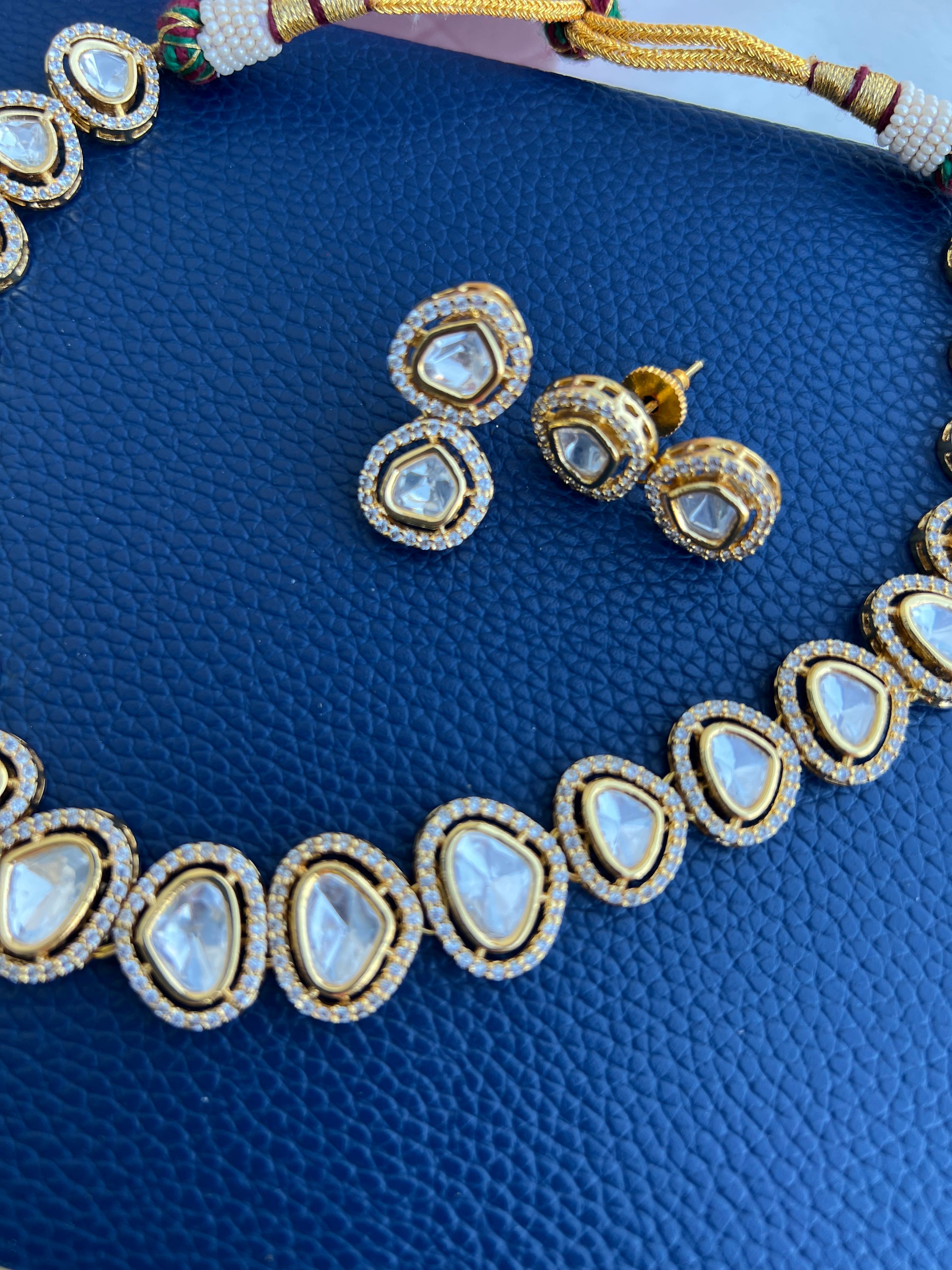Beautiful Uncut Kundan and American Diamond Choker with earrings in Golden color
