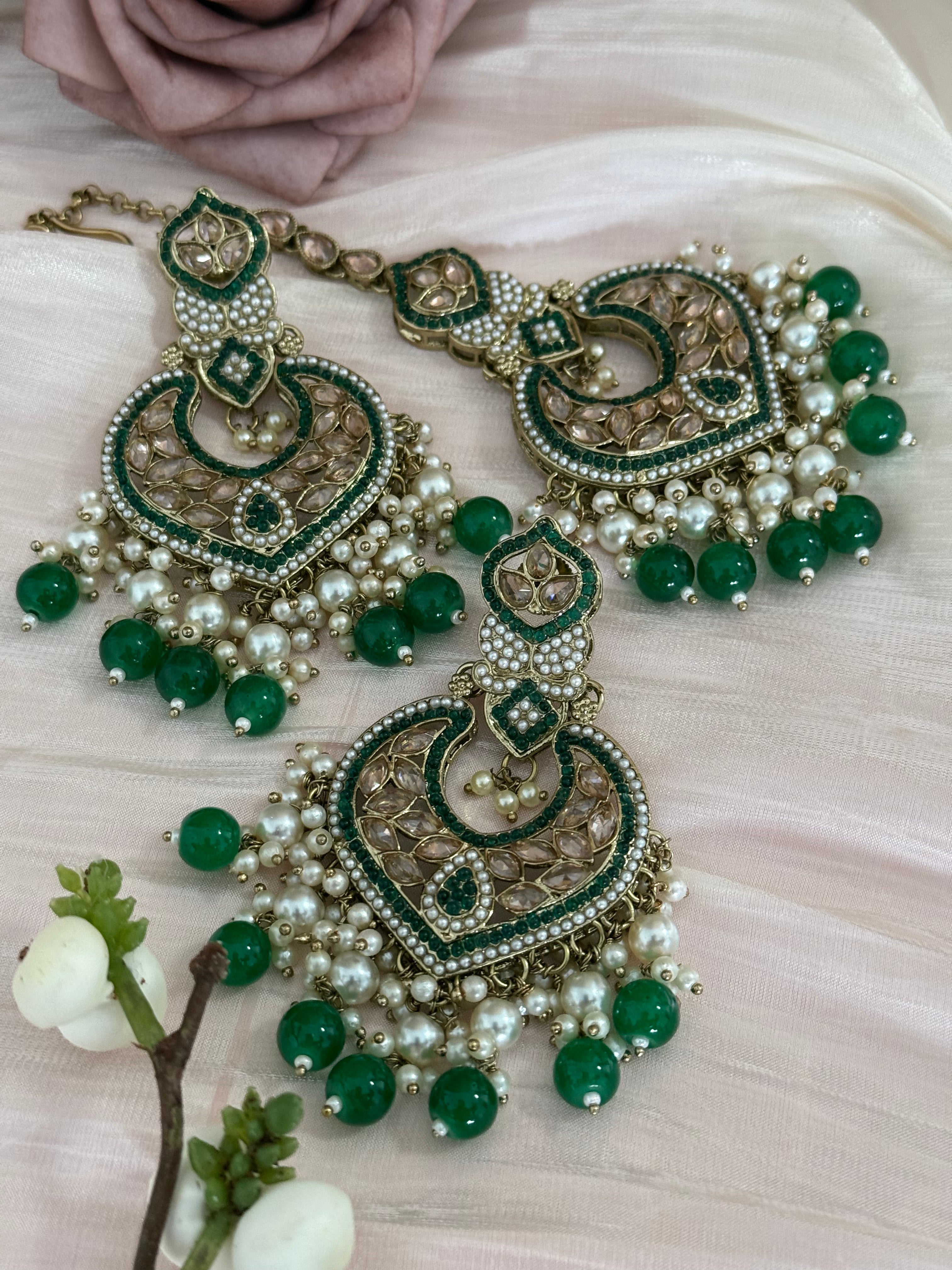 Add a touch of regal elegance to your look with our stunning Pakistani Earrings Tikka, featuring intricate polki work layered with delicate beads. This exquisite piece combines traditional craftsmanship with a modern flair, creating a captivating accessory that complements any occasion. The timeless polki stones are beautifully set, while the delicate bead layers add movement and texture, making it the perfect choice for weddings, parties, or festive celebrations. Whether you're the bride or a guest, this earrings tikka set will elevate your style and leave a lasting impression