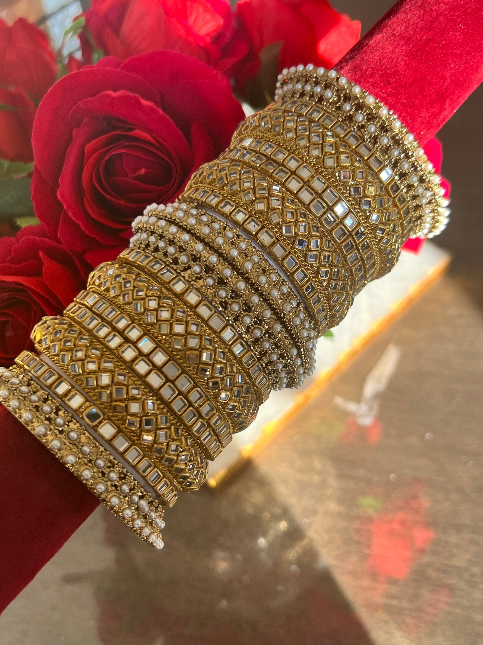 Kundan bangle set in golden mk