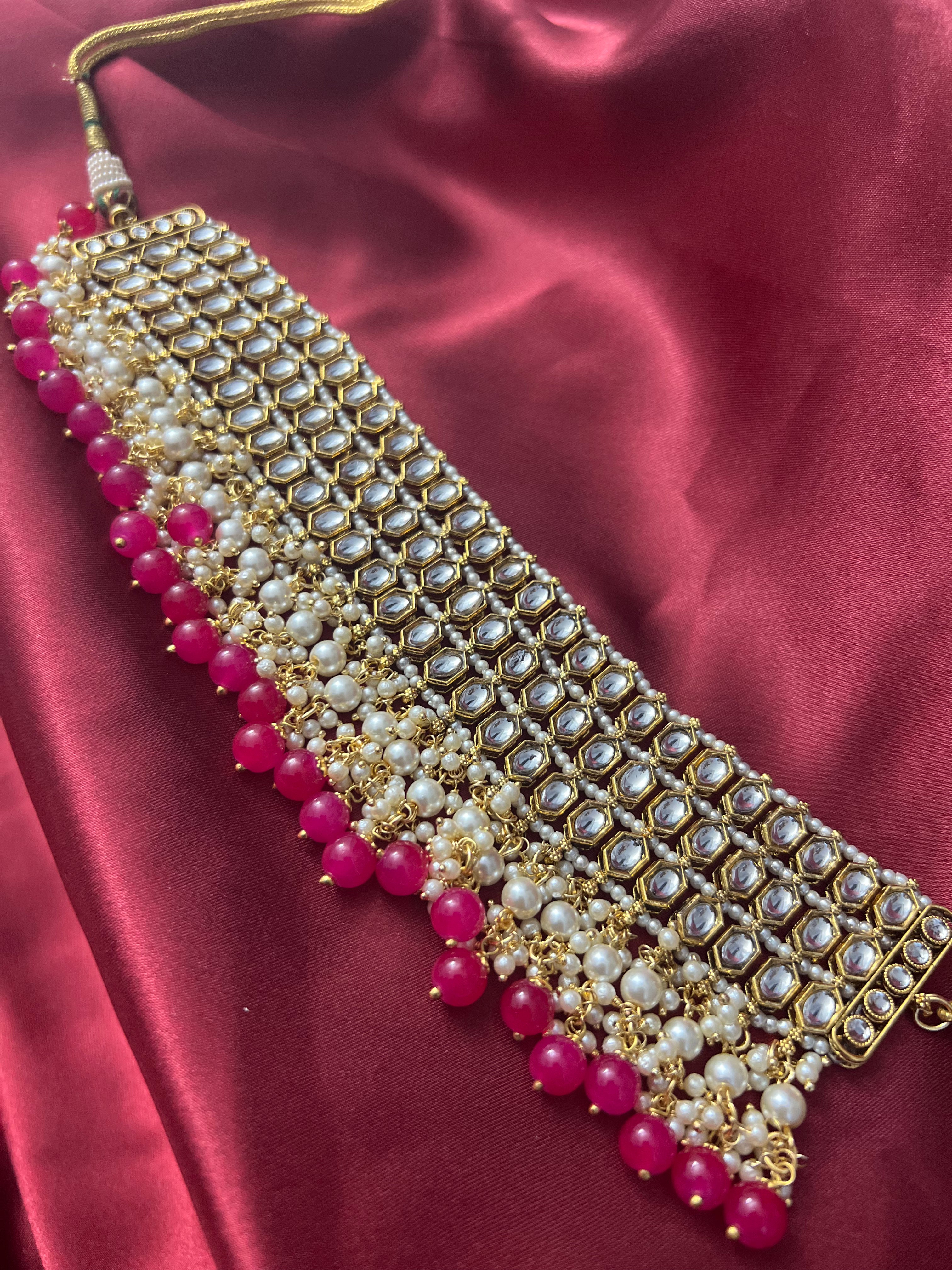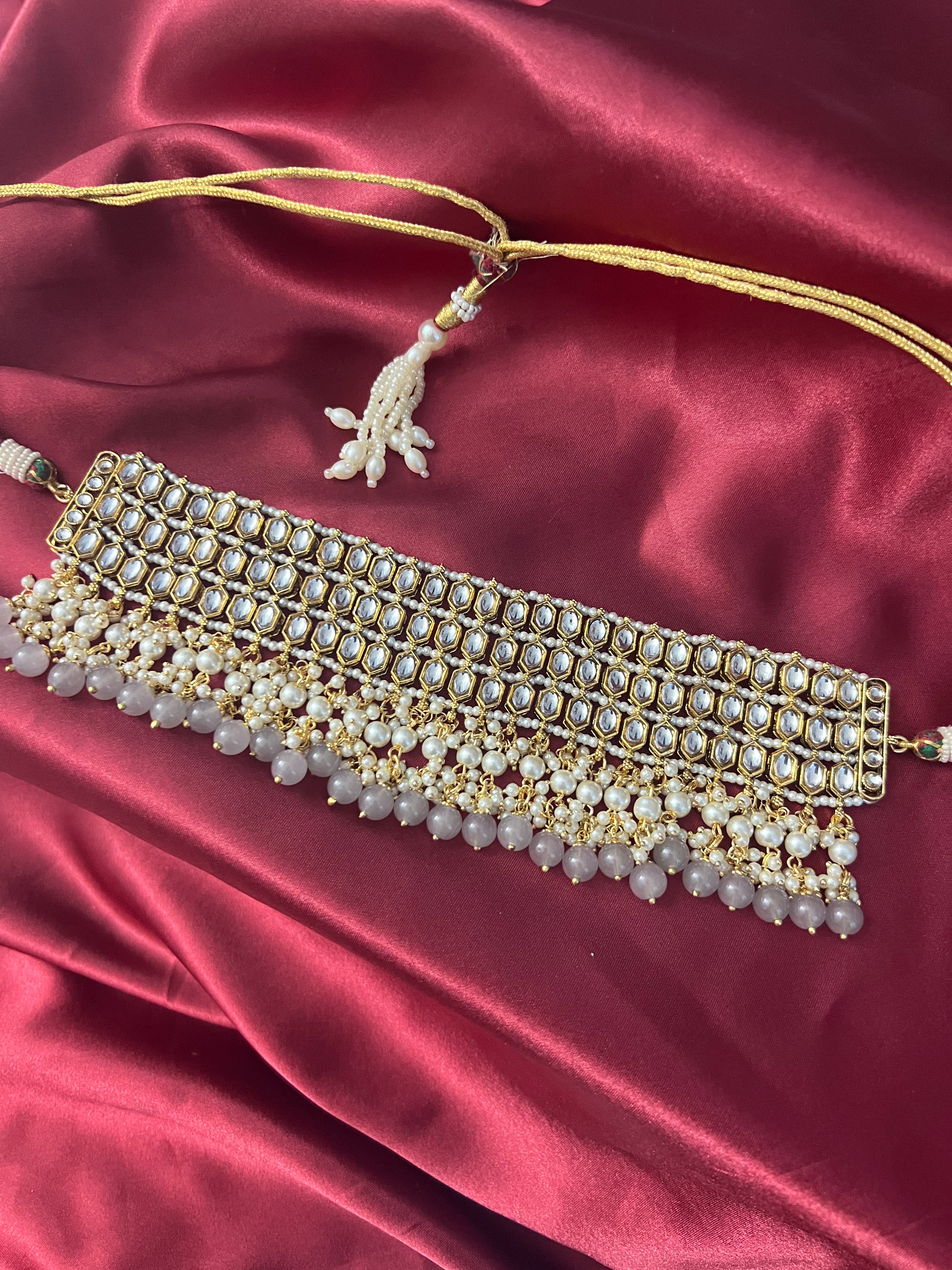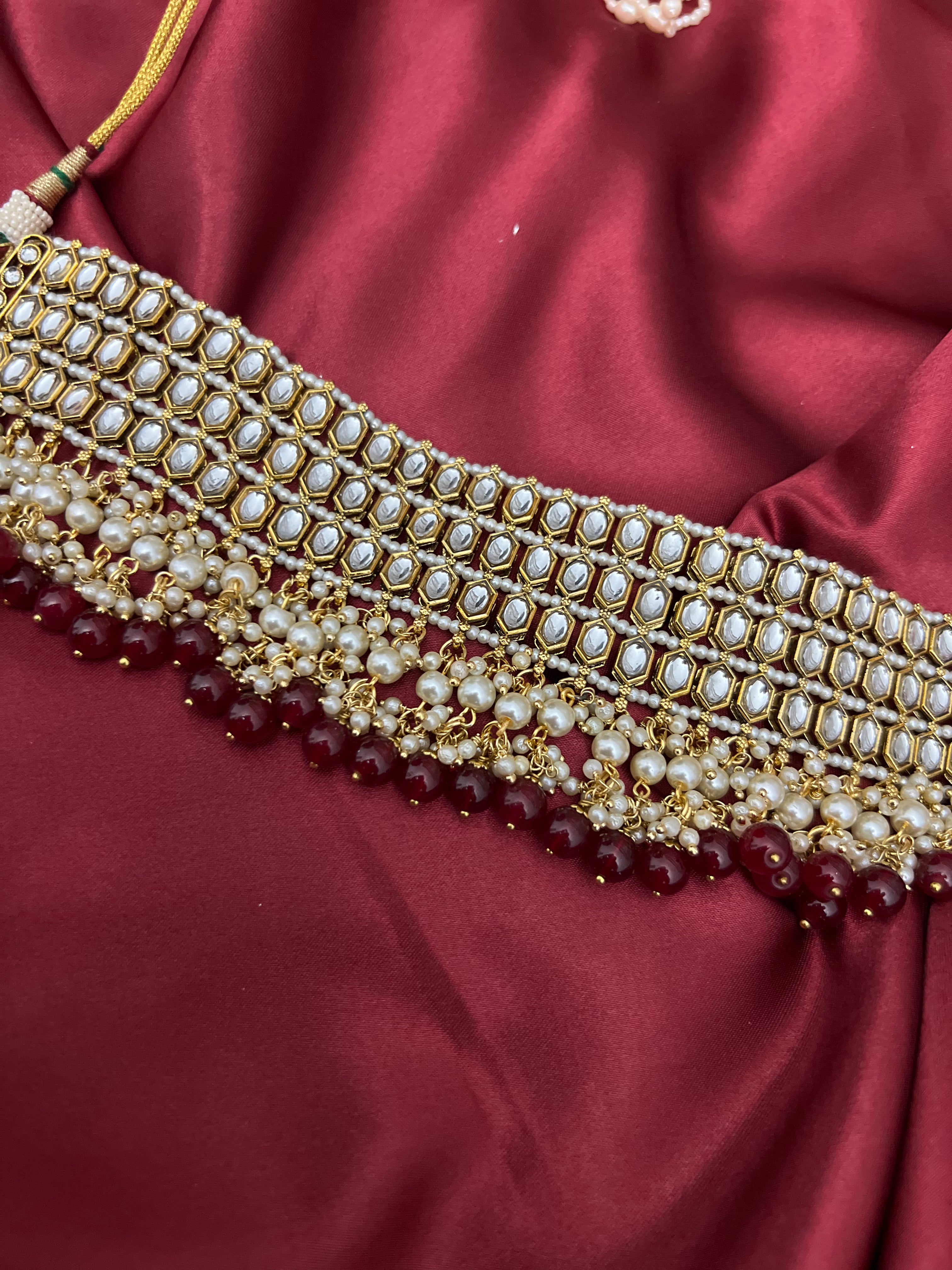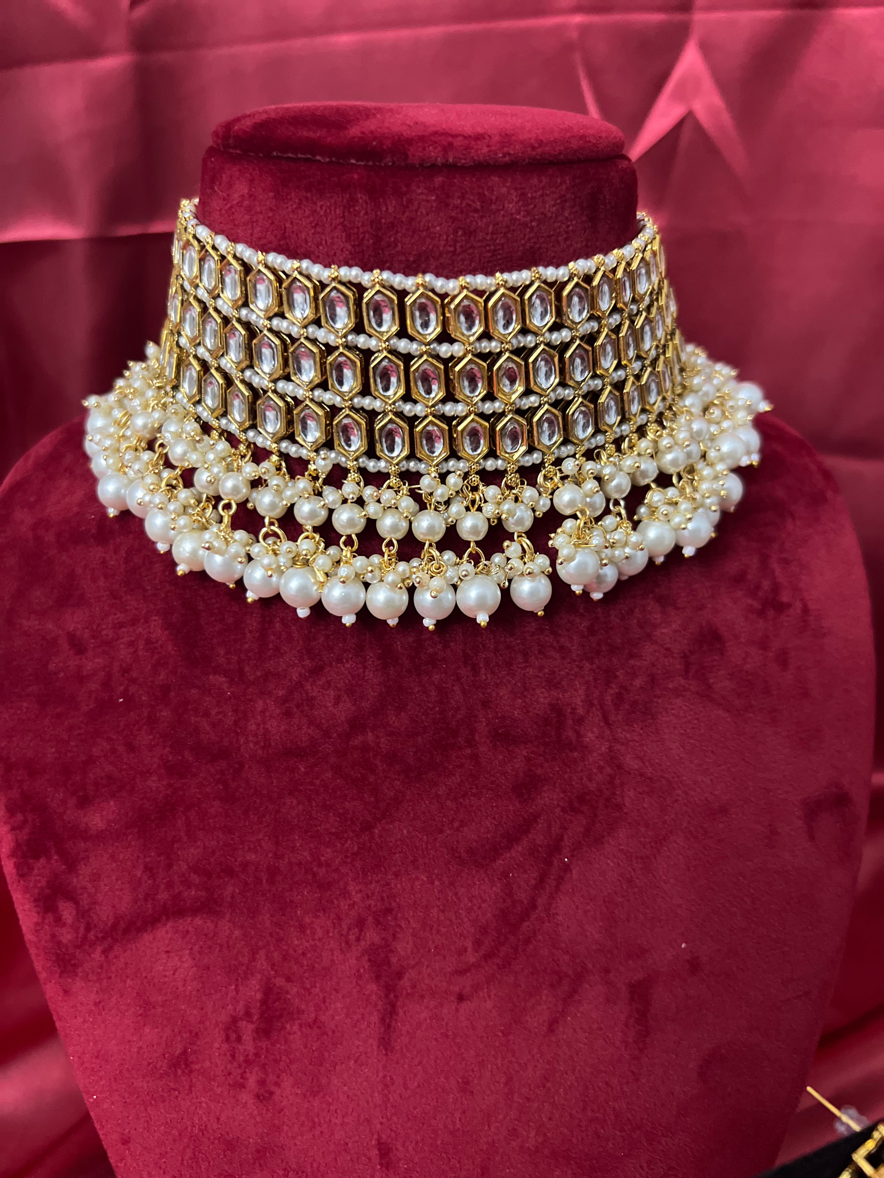 Superior quality kundan necklace with regular sized jhumkis and tikka