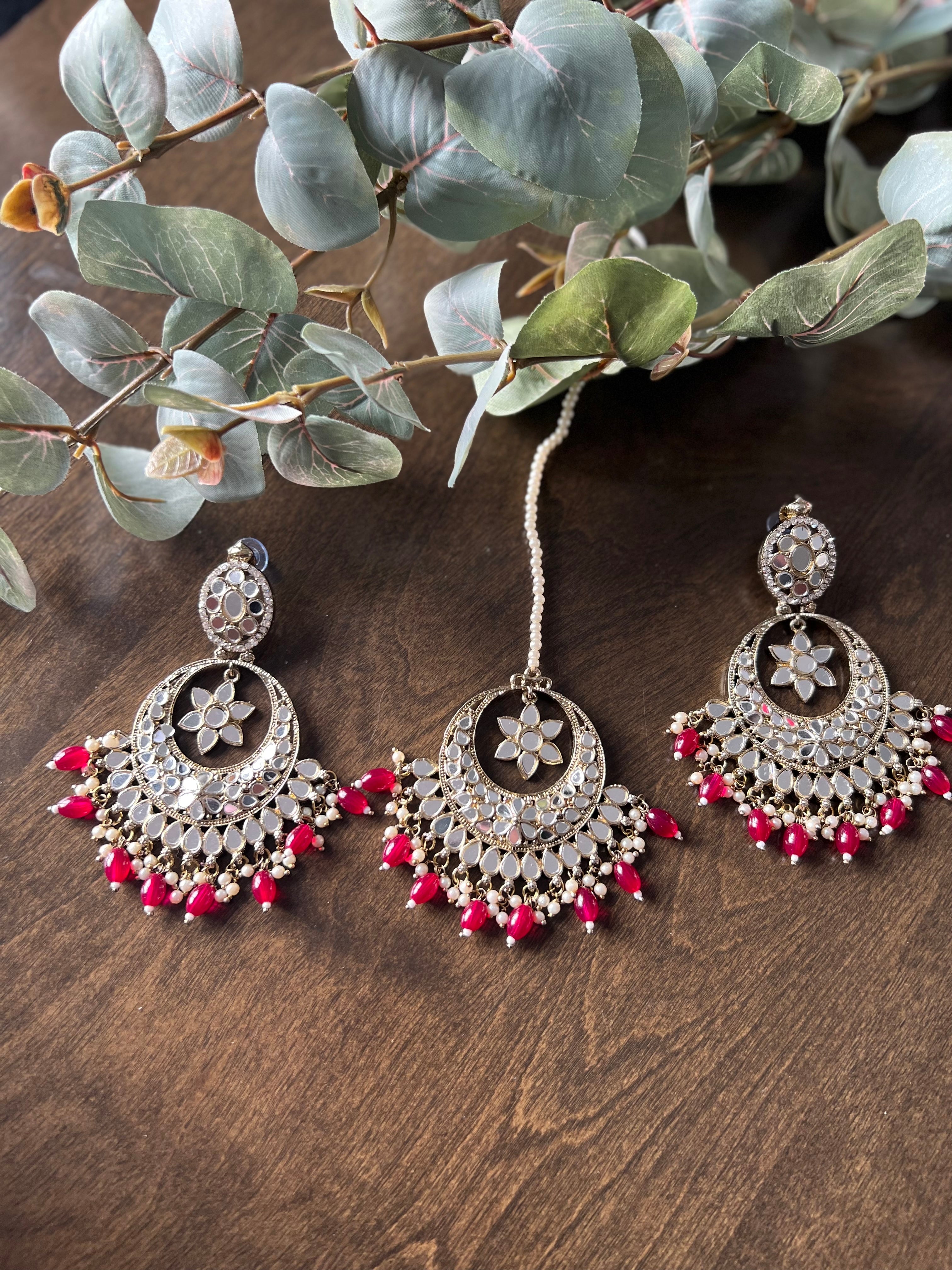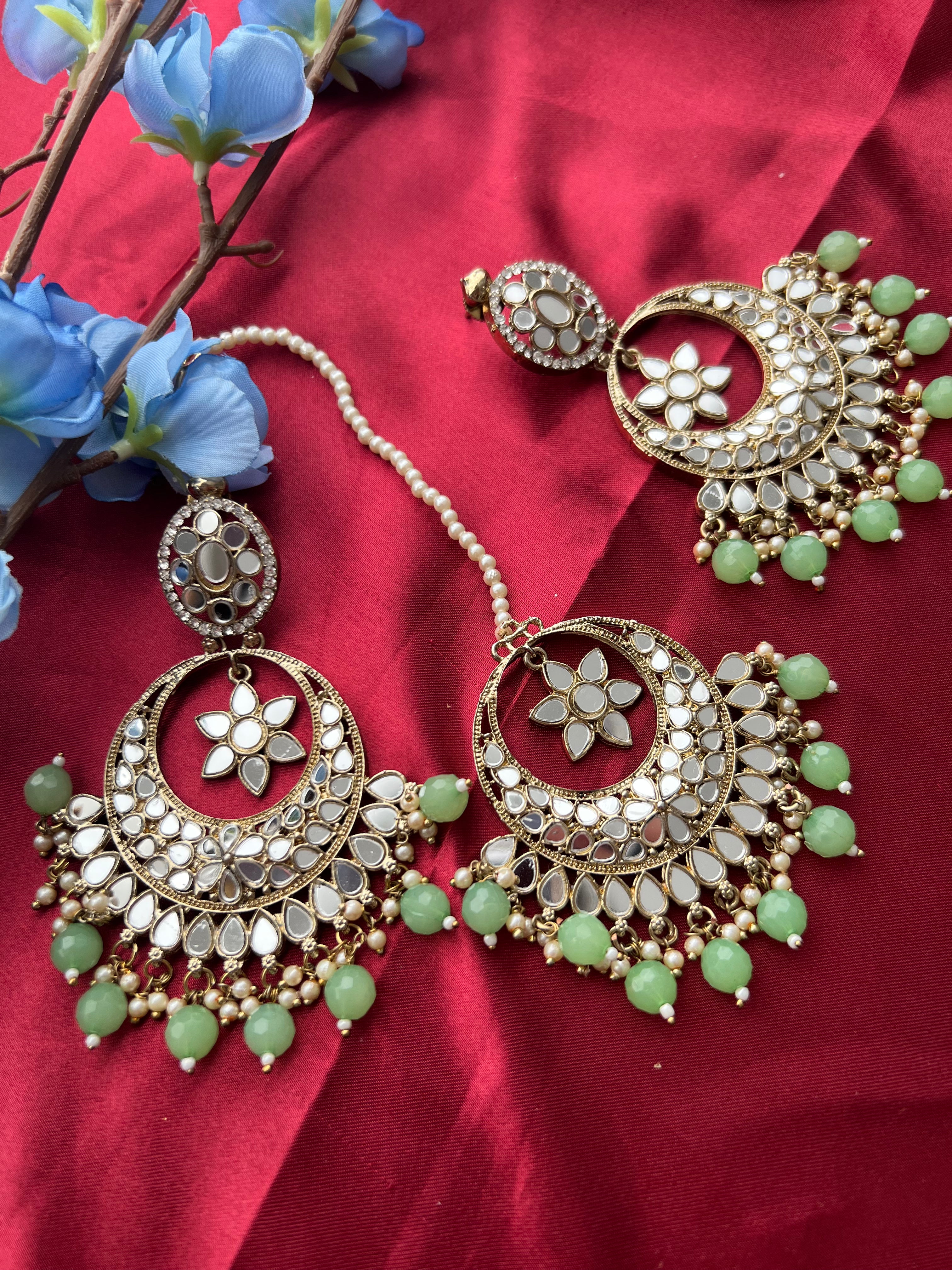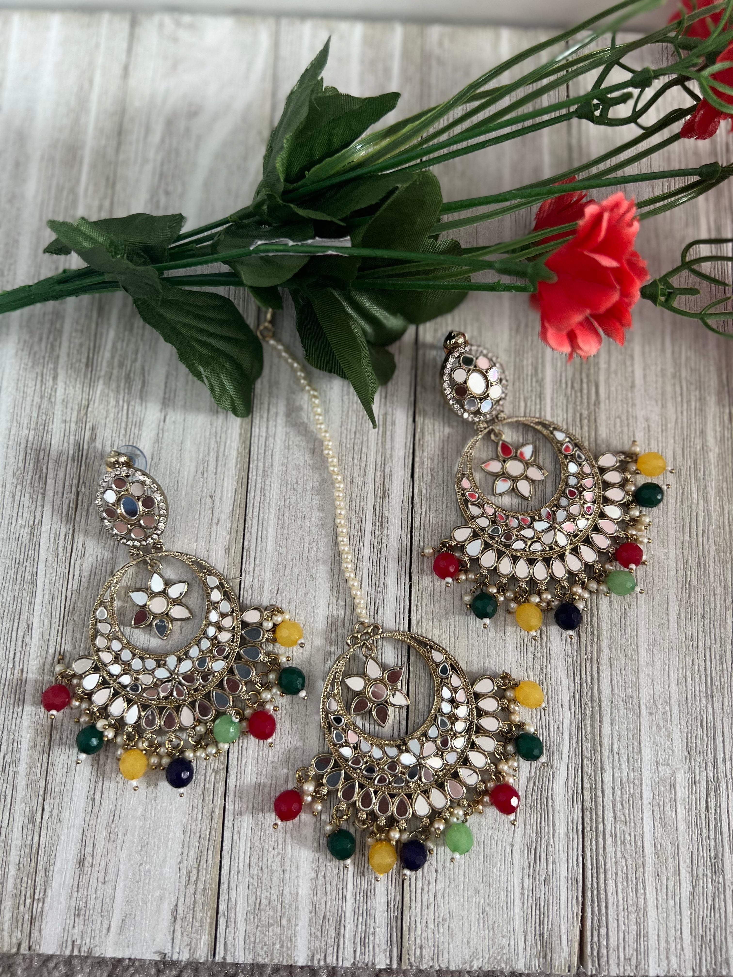 Mirror earrings and Tikka