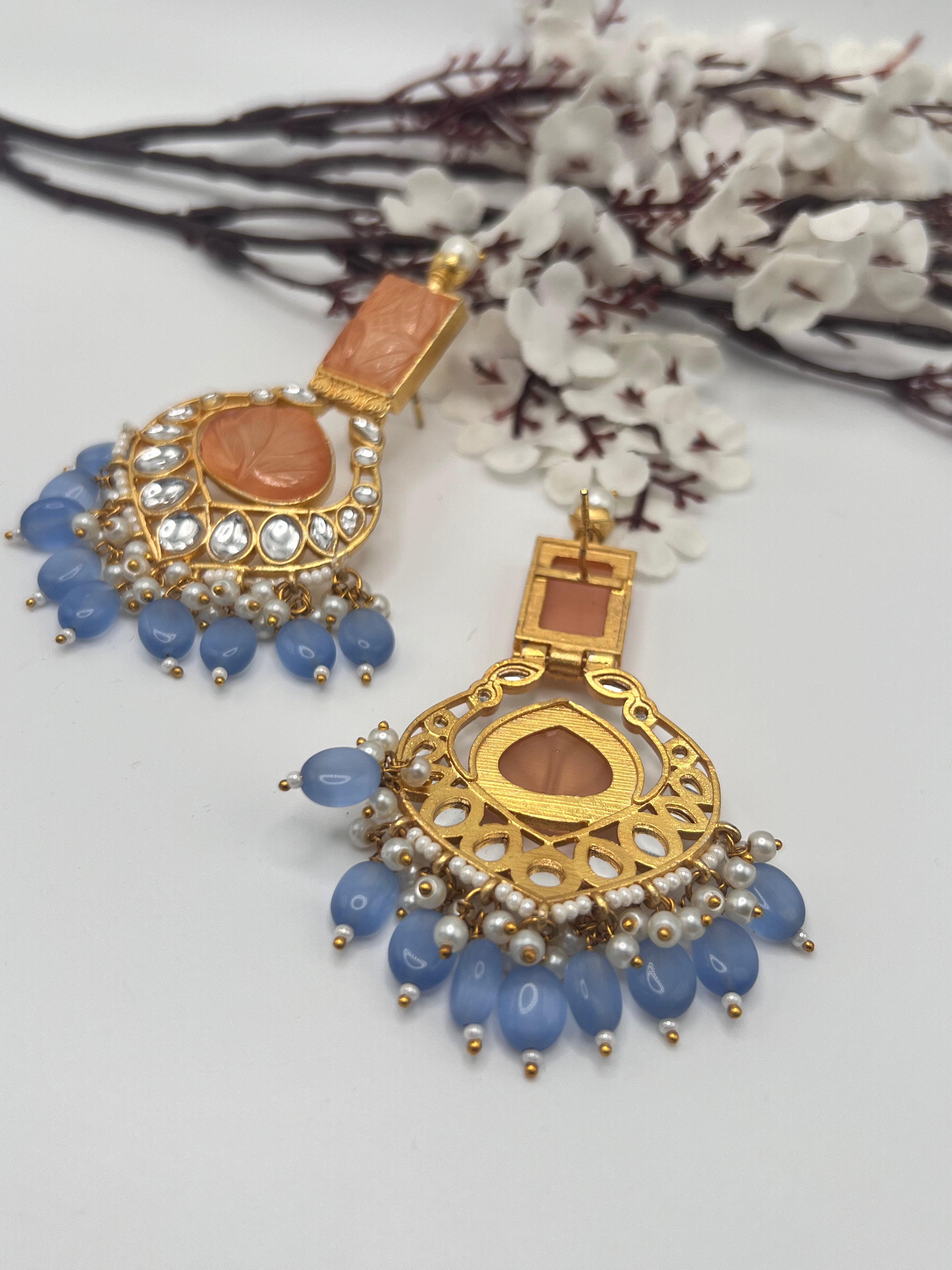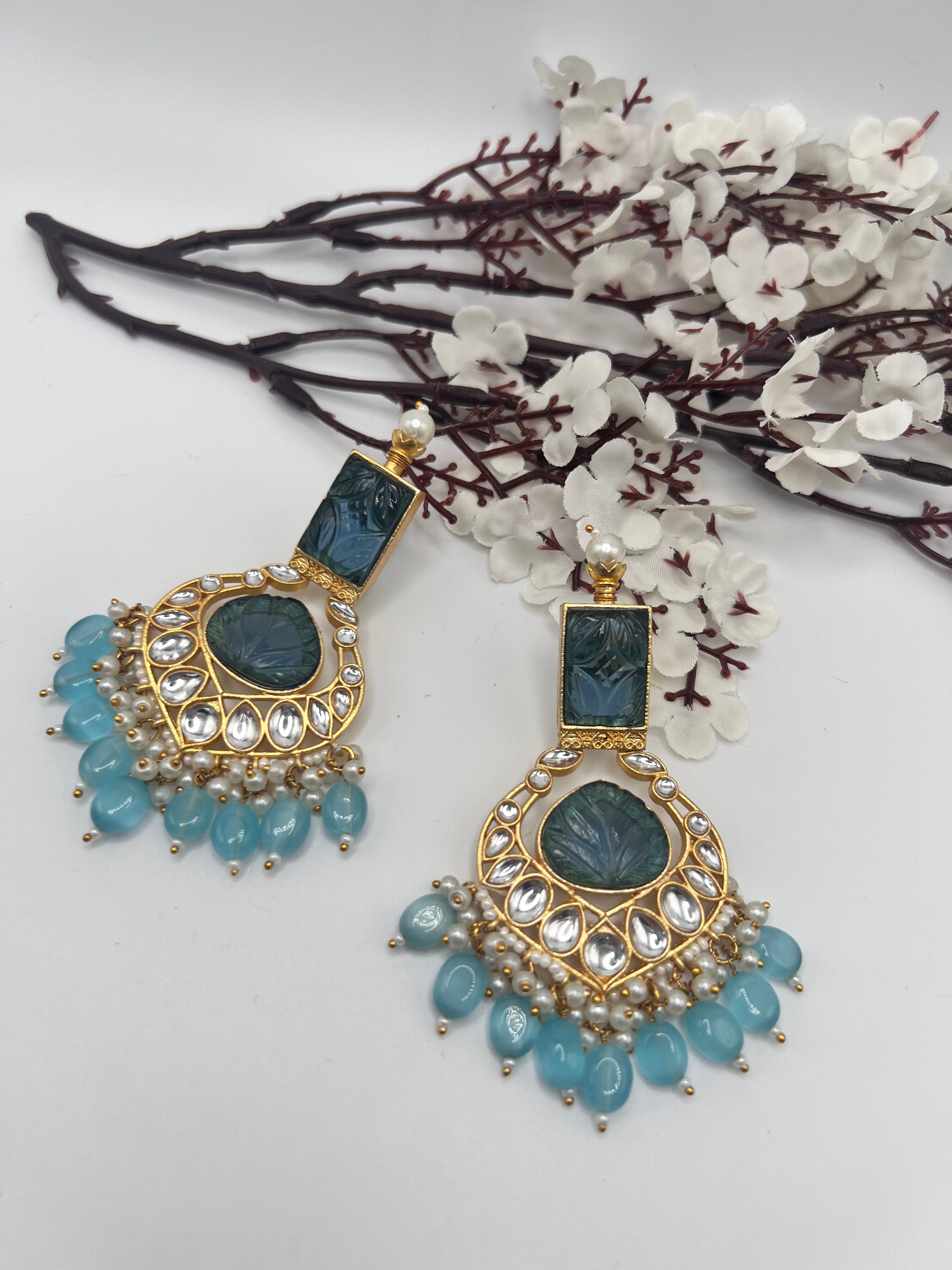 Beautiful Kundan Earrings with monalisa beads and carving stone