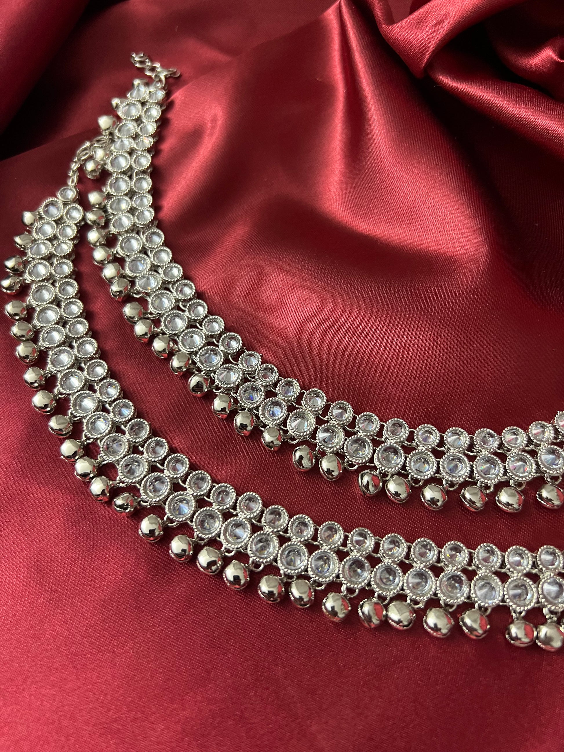 Silver anklets with bells in polki