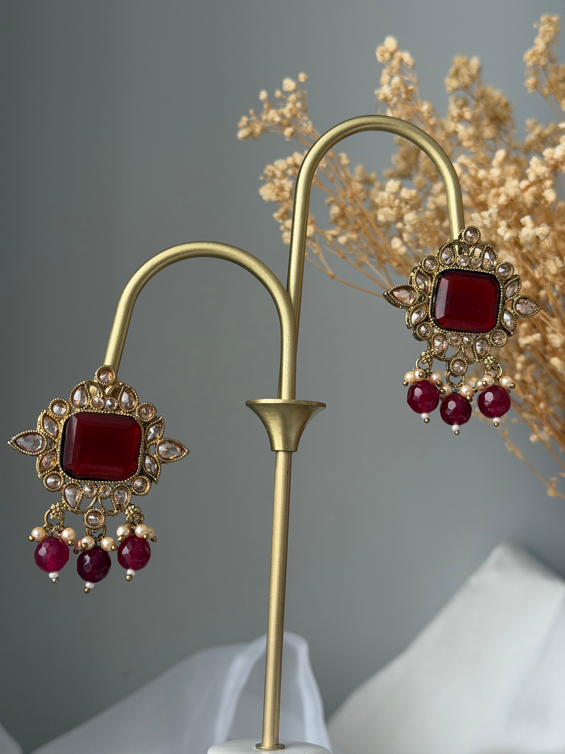 Polki earrings with ruby colored stones