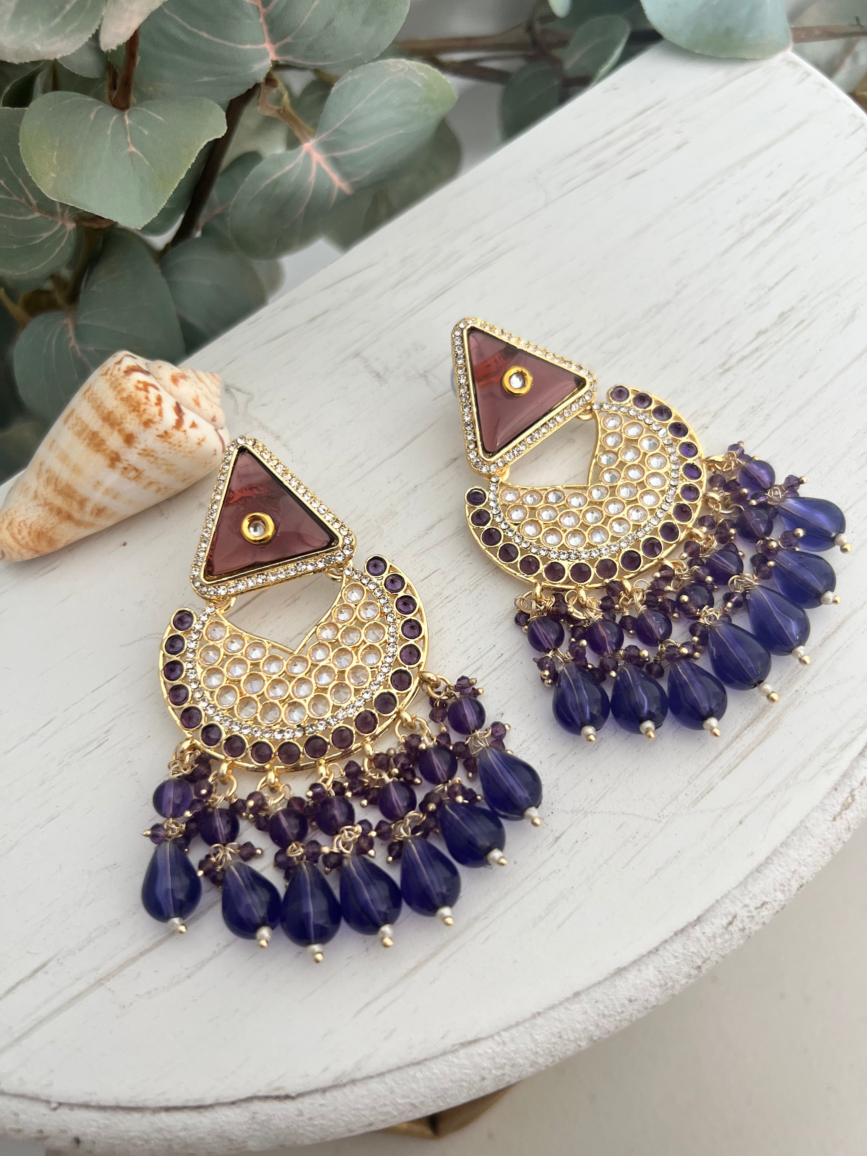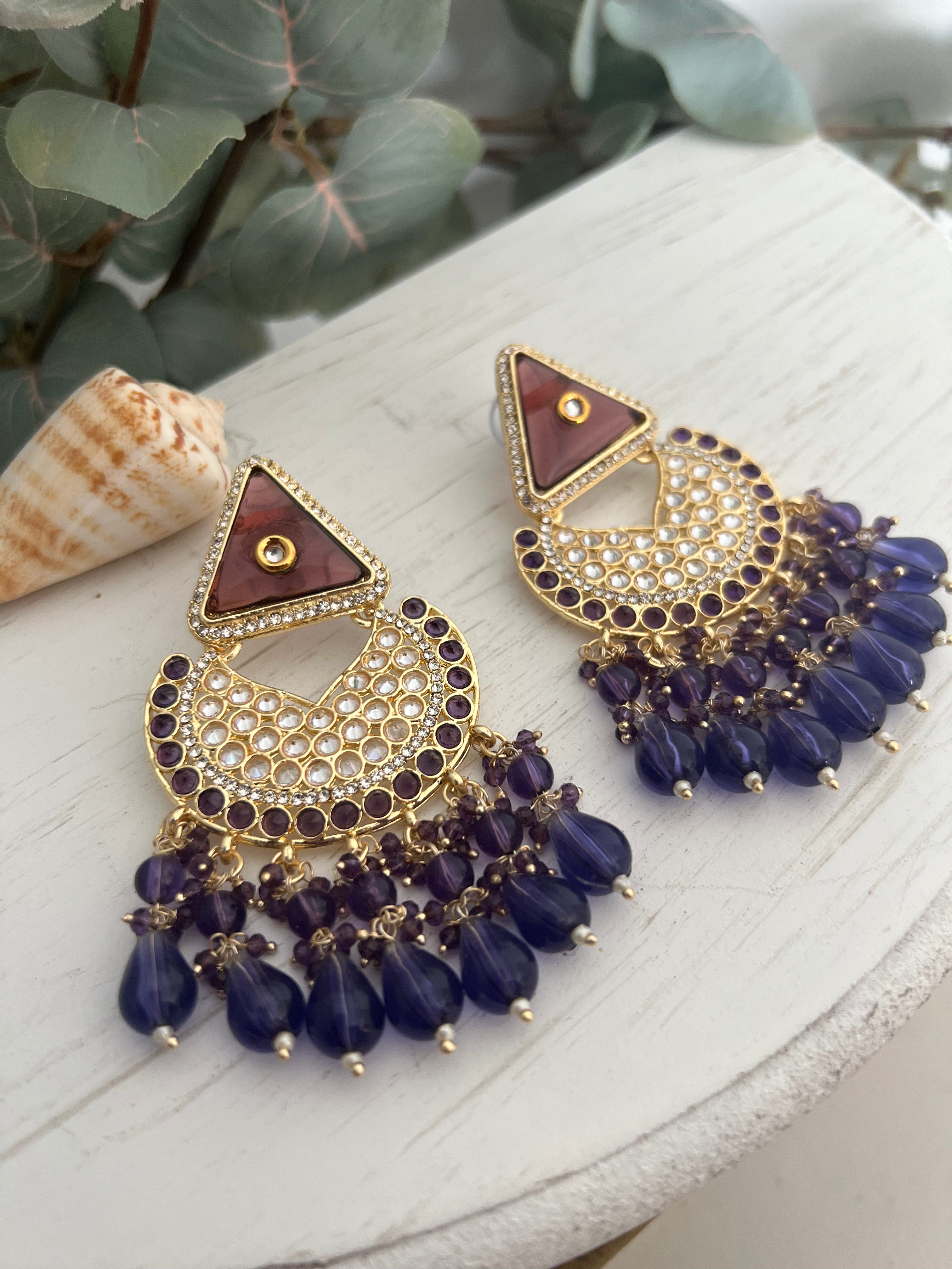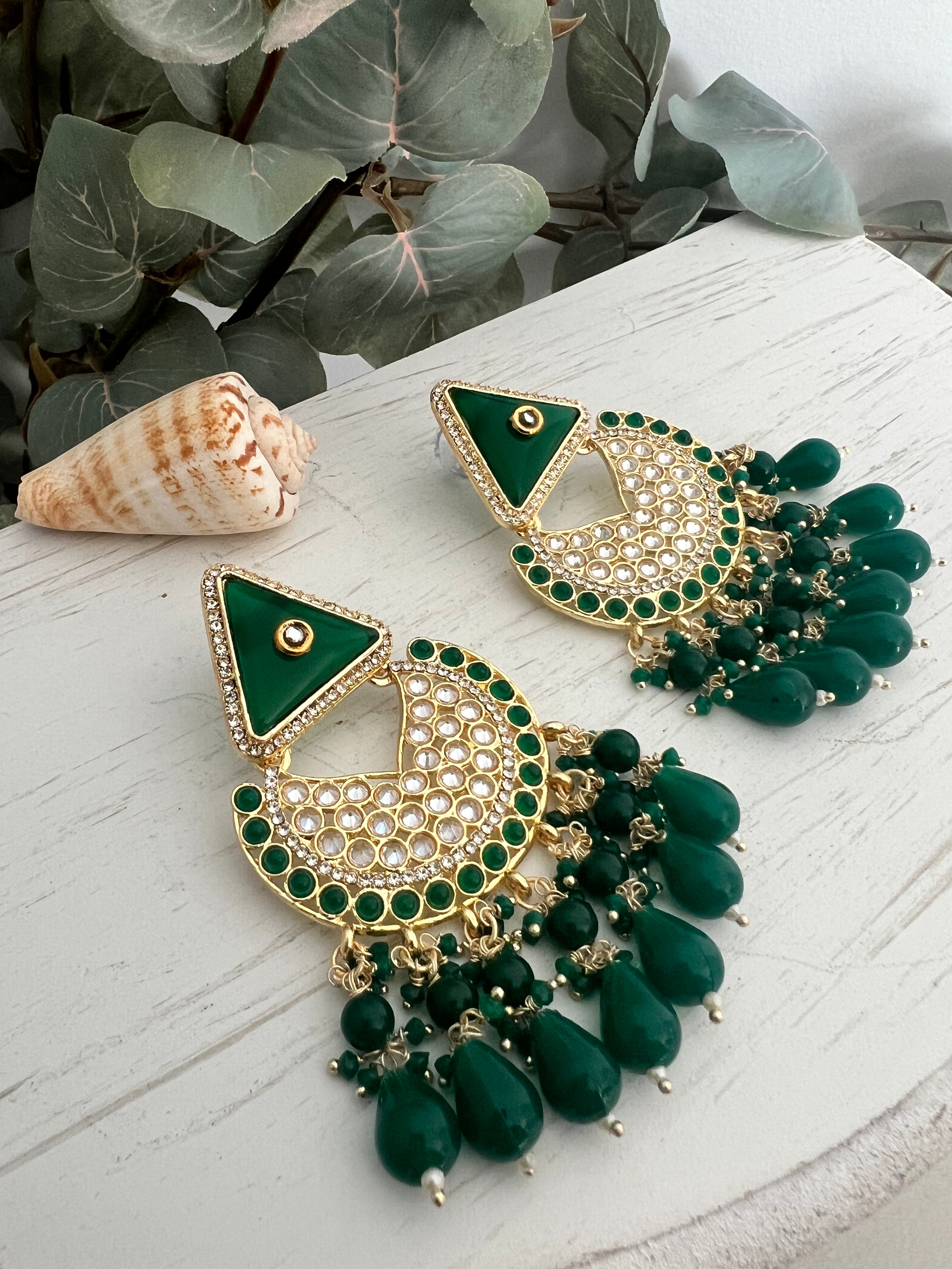 Earrings in polki & monalisa beads with hint of kundan