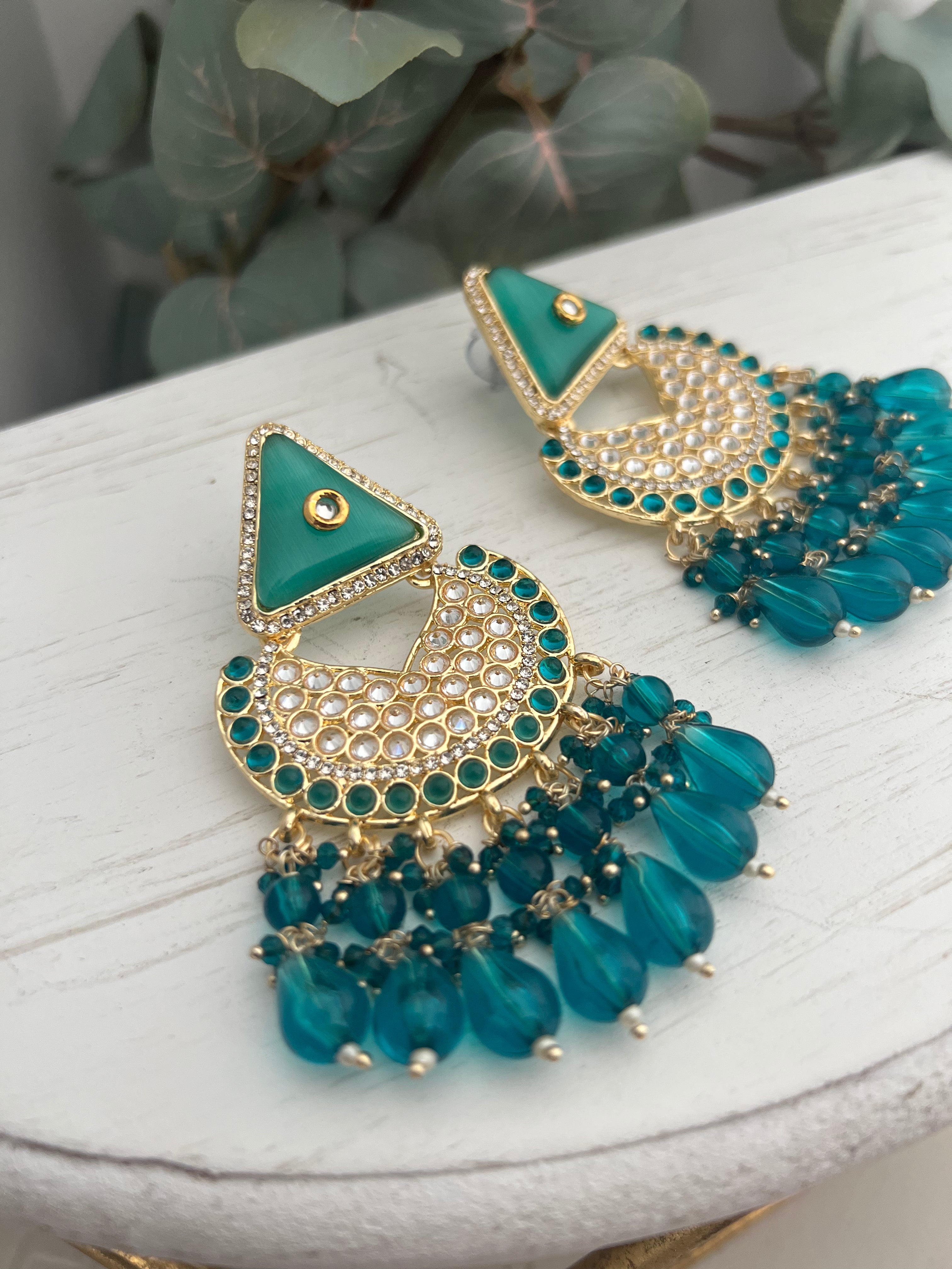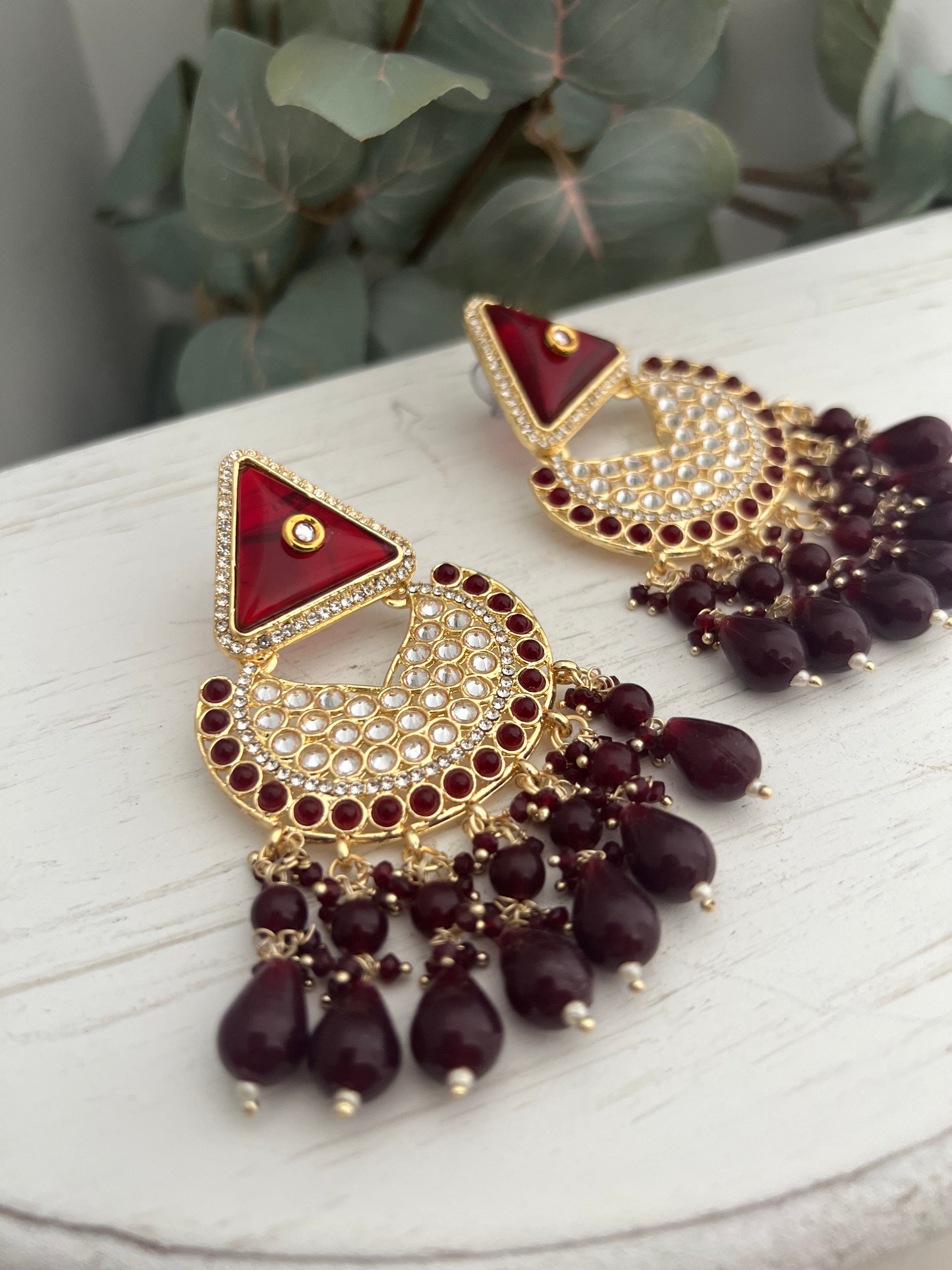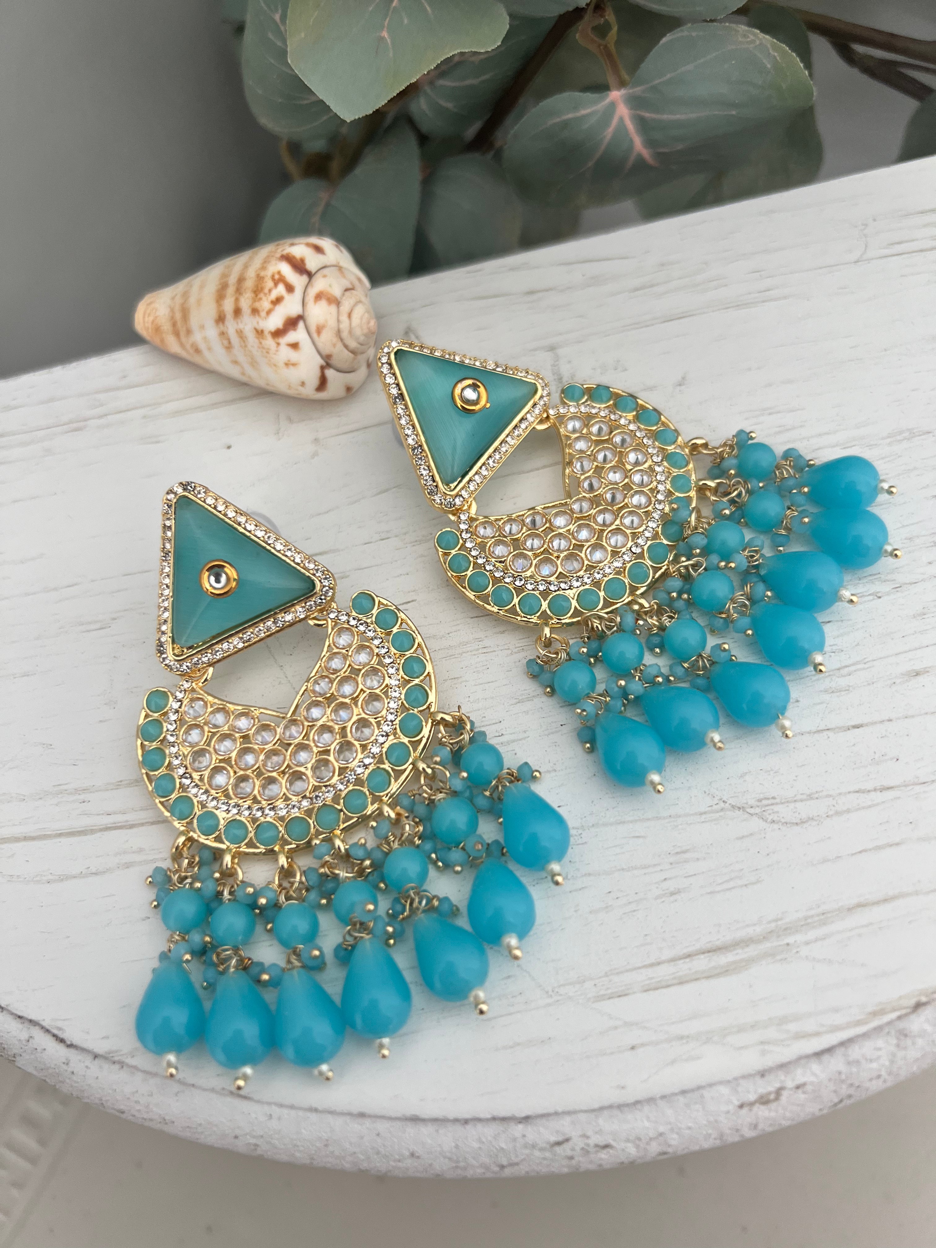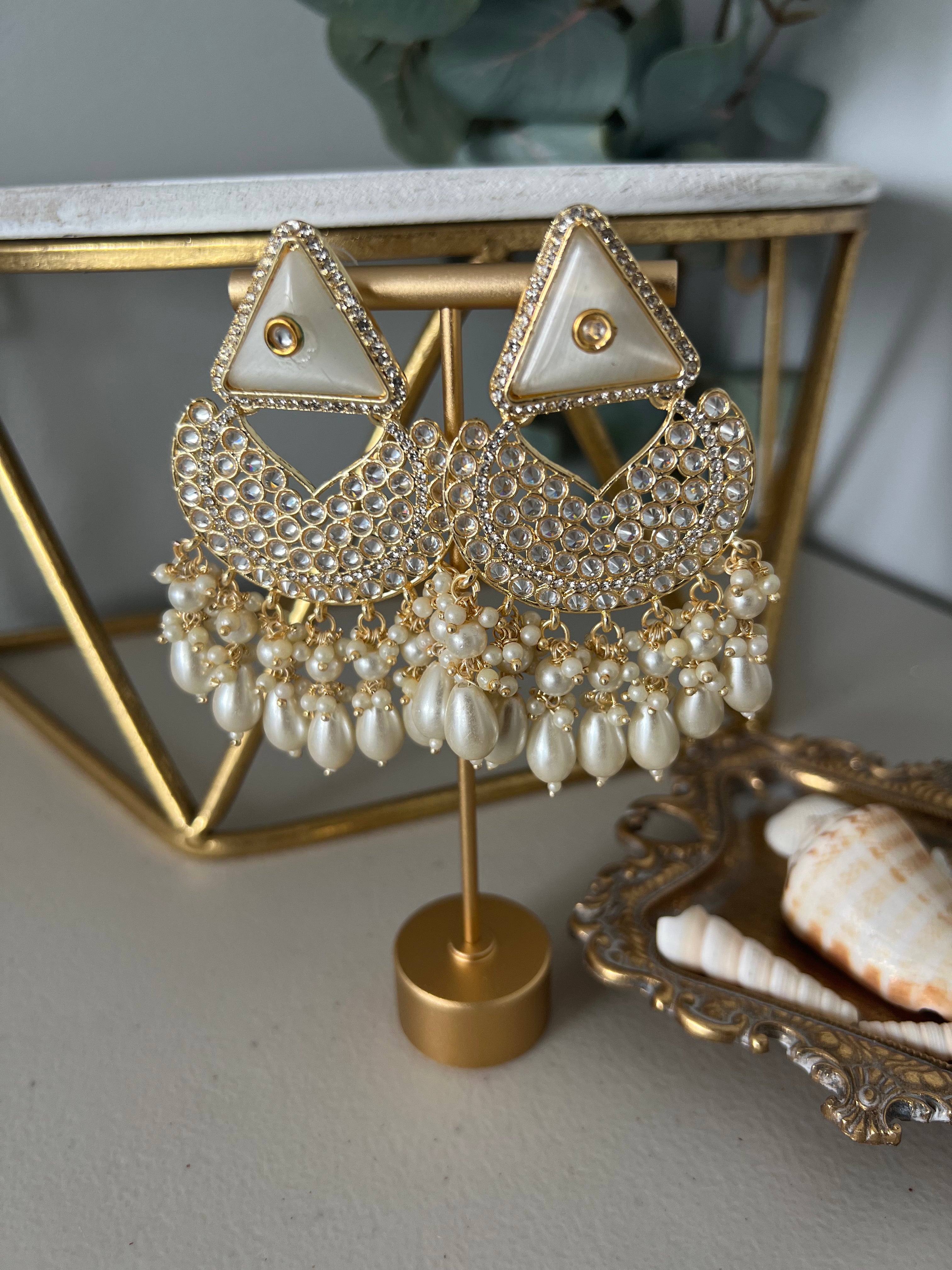 Earrings in polki & monalisa beads with hint of kundan