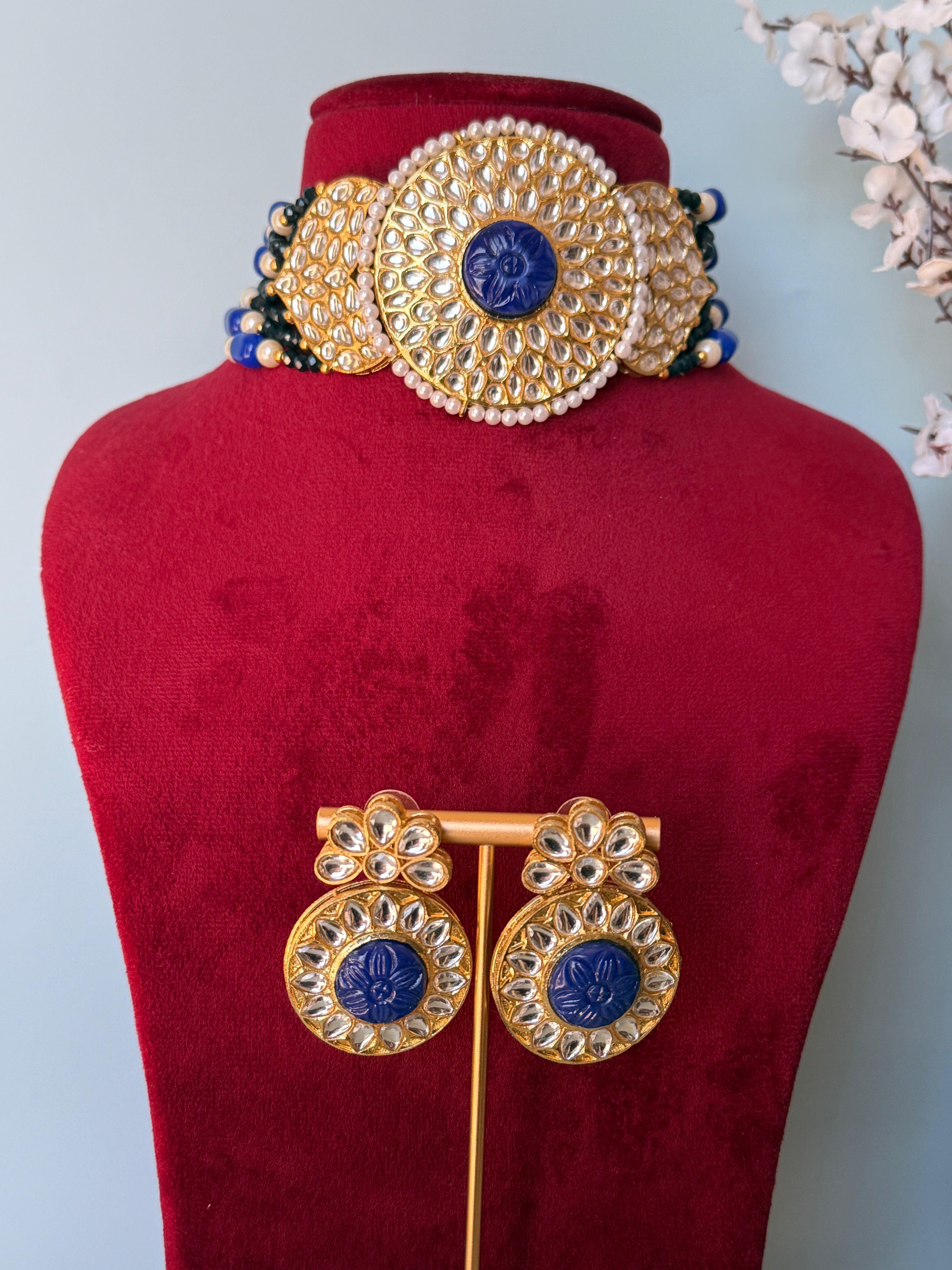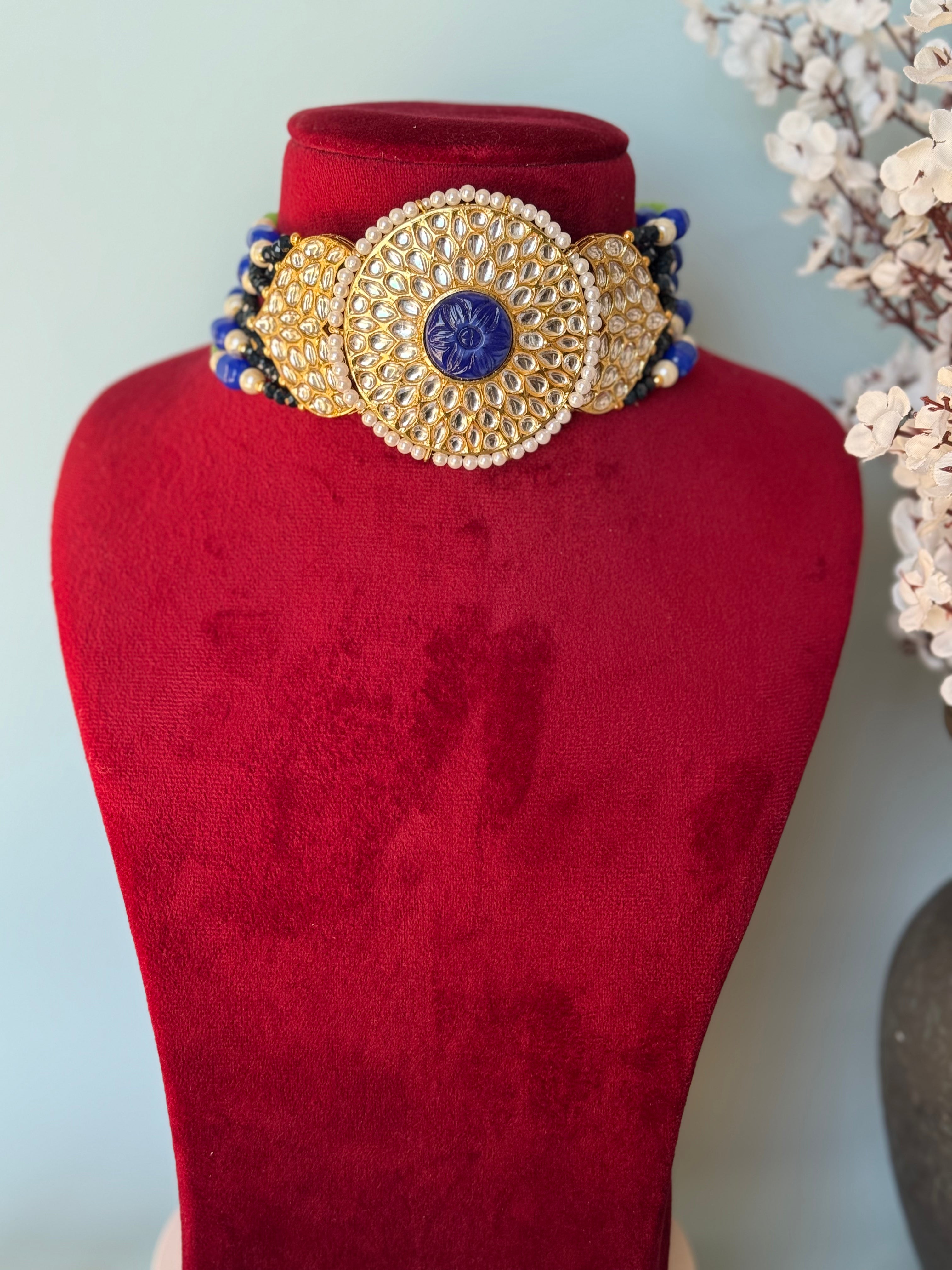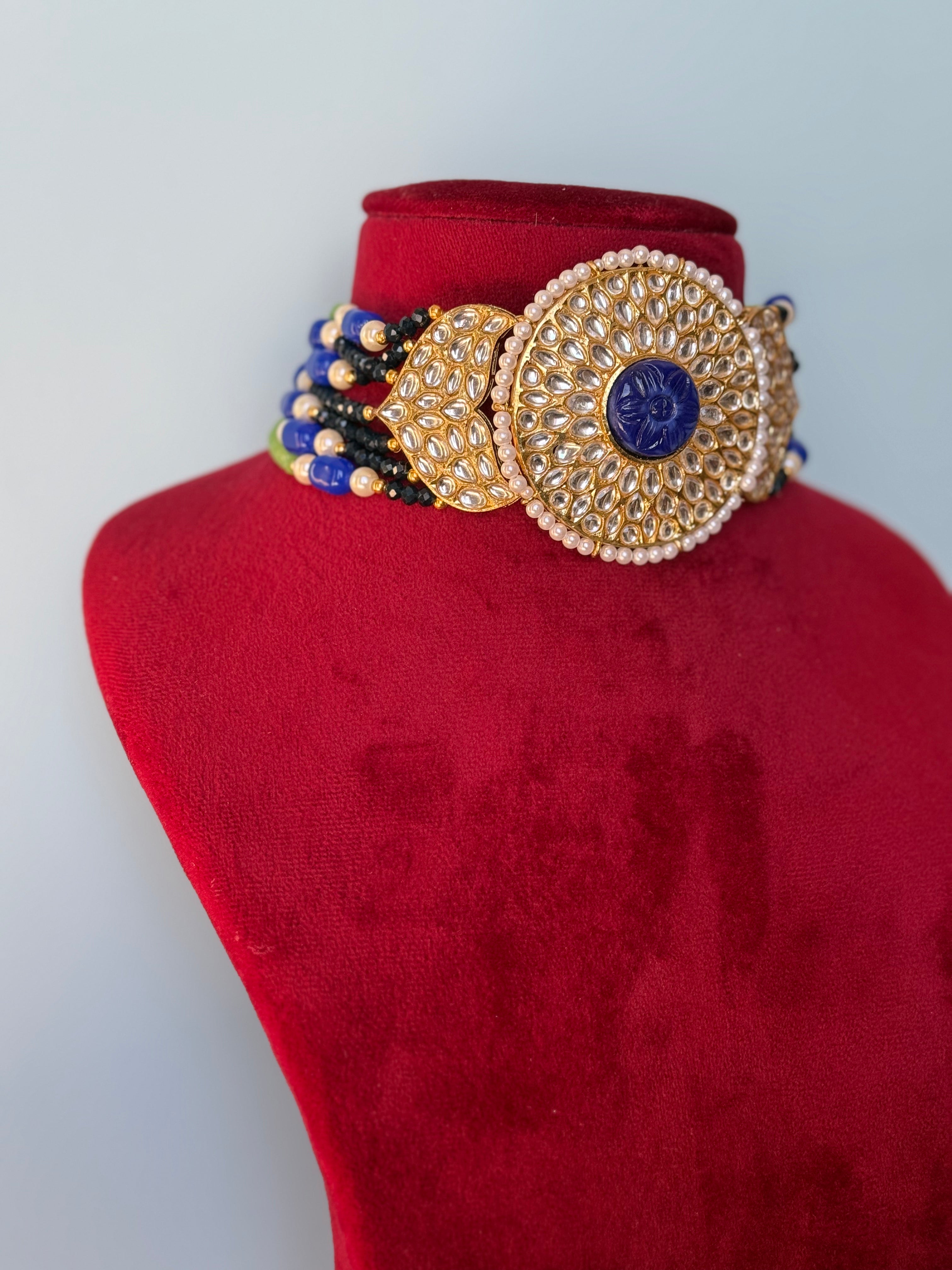 Explore the timeless elegance of our Tithira Choker Set, featuring  kundan craftsmanship. This set exudes a regal charm and is perfect for special occasions.